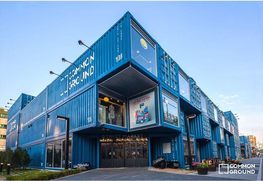 코오롱인더스트리에서 건국대 인근 주차장 부지에 선보인 초대형 팝업스토어. 컨테이너 200개를 쌓아 올린 건물로, 20대 감성의 문화 플랫폼이다. 자연스러운 독특함을 추구하며 리사이클링 마켓, 플라워 마켓, 버스킹 마켓 등 매주 새로운 테마로 방문객들에게 새로움과 활기를 제공한다. DFA(Design For Asia Award) 2015 에서 Finalist를 수상하기도 했다. (사진 : 커먼그라운드 홈페이지)