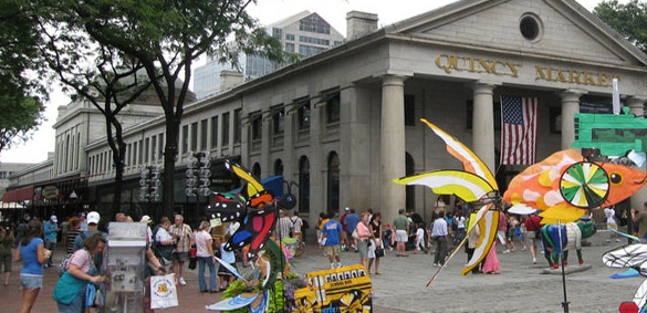 - 퀸시마켓(우)은 보스턴이 시로 승격된(1822년) 직후 인 1824년 건립된 역사적인 건물이다. 과거 많은 정치인들이 연설장소로 애용하는 등 보스턴의 명소가 되었다.