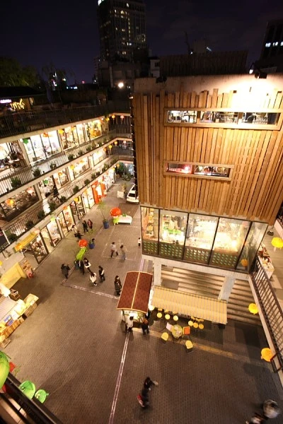 "인사동 쌈지길" : 핸드메이드 공예품과 디자인 상품 전문 쇼핑몰. 1층에서 걷다 보면 4층까지 자연스럽게 연결되는 스파이럴 구조로, 일본의 오모테산도힐스와 종종 비교됨 (사진 : 쌈지길 홈페이지)