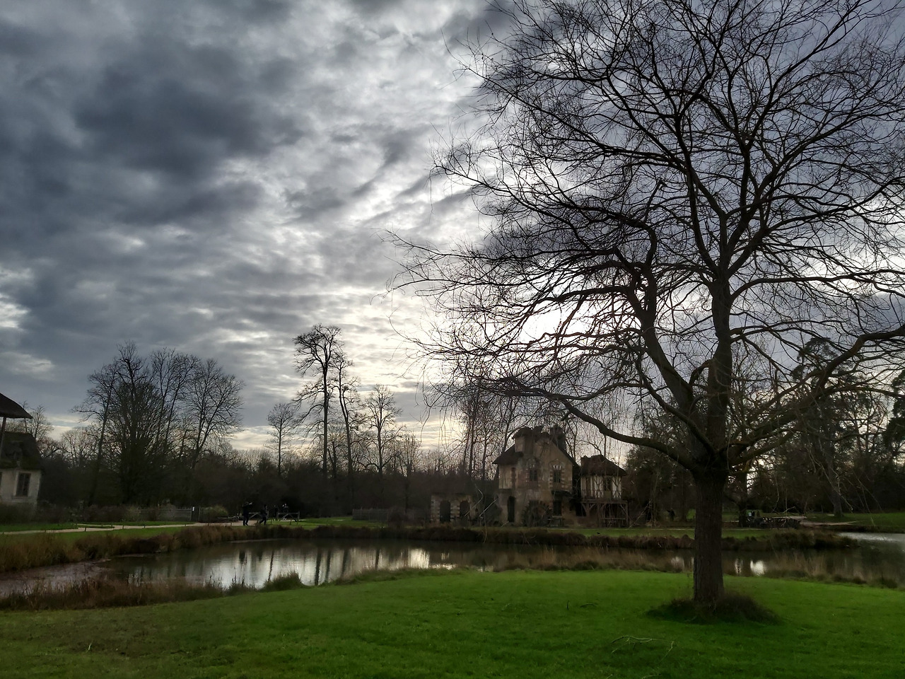 궁전을 나와서는 궁전 배경과 인근의 왕비의 촌락이라는 곳으로 이동하면서 가이드가 사진을 찍어줬다. 당시 유럽 귀족들은 아름다운 정원을 만드는 것이 유행이었다는데 마리 앙투아네트도 그 유행에 동참하여 궁전의 호숫가에 작은 촌락을 지었다. 그것이 바로 왕비의 촌락이다.