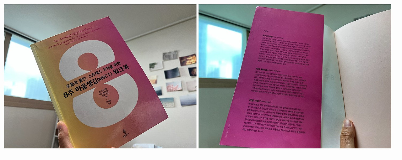 심리서나 우울증 극복 책들은 실질적인 도움까지 주었다. 특히 도움이 많이 되었던 책은 <8주 마음 챙김 워크북>이었다. 우울과 불안, 스트레스 극복을 위한 8주 마음 챙김(MBCT) 워크북이라는 책인데, 책에 나와있는 대로 하나하나 했더니 정말 증상이 좋아졌다.