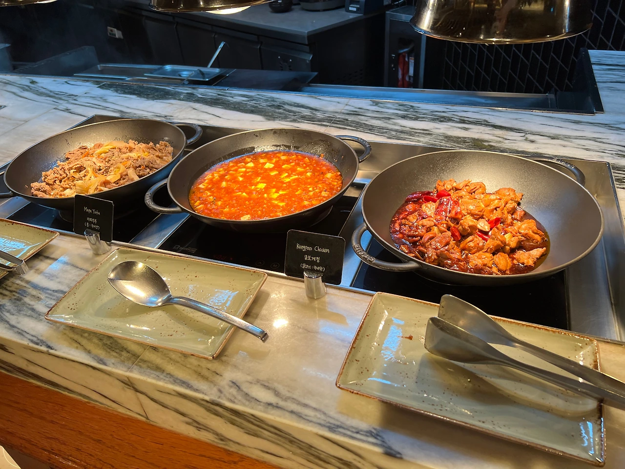 애프터눈 라운지는 입가심 할만한 빵, 샌드위치 등의 주전부리 중심이었다면, 칵테일 디너는 다양한 주류 외에도 먹을 만한 요리가 꽤 많이 제공되어서 만족스러웠습니다. 특히 갈비찜이 정말 맛있더라구요. 갈비찜만 여러 차례 담아서 먹었습니다. 다른 마라새우 등 요리도 맛있었어요.