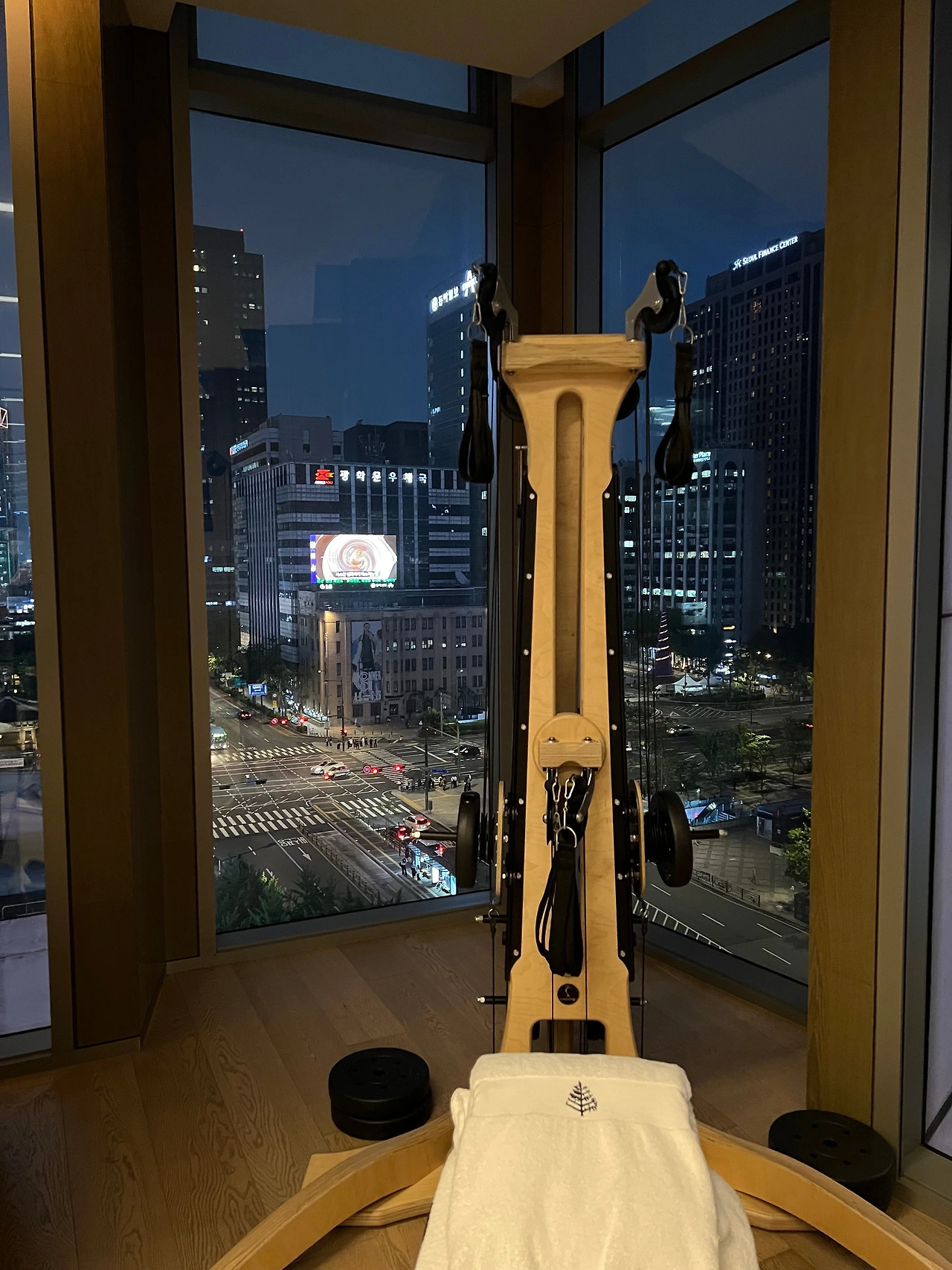 칵테일 디너로 배도 채웠으니 칼로리 소모할 겸 운동을 하러 내려가 봅니다. 아내와 번갈아 가면서 아기를 보고 각각 운동&사우나 하기로 약속. 9층 카운터에서 락커키를 받아서 환복하고 8층 Fitness에 들어갑니다. 최신식 머신들과 기구들 그리고 필라테스 머신 및 각종 스트레칭 도구까지 없는 게 없는 초호화 시설입니다. 한창 운동 매진 중일 때 방문했으면 2시간은 넘게 버닝했을텐데 아기와 함께 하는 호캉스 취지에 맞게! 적당히 피트니스 시설 분위기 만끽하고 워밍업하고 사우나로 향했습니다. 클럽 연회비가 궁금해서 슬쩍 카운터에 여쭤보니 입회 및 비용 관련 안내 봉투를 친절하게 주시더라구요. 보증금이 포함된 연회비 가격을 보고 이 정도 시설에 이 가격이면 굉장히 합리적인(?) 가격이다 싶으면서 정말 더 열심히 돈 벌어서 성공해야 겠다는 동기부여가 되더군요. 비싸지만 싸다! 라는 느낌....
