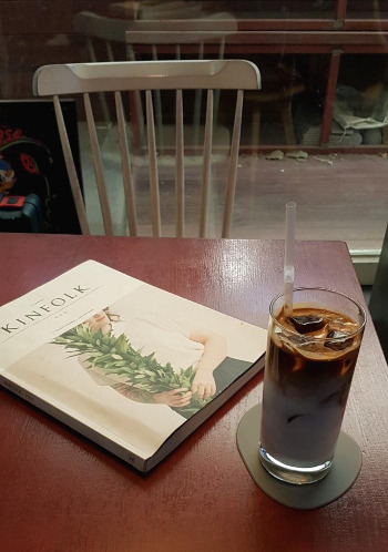 - 자리마다 Kinfolk 잡지가 하나씩 놓여 있는 분위기 좋은 카페. 입구를 들어서면 폭은 좁지만 안쪽으로 공간이 많아서 나름 쾌적한 느낌이 든다. 테이크 아웃은 2천원을 할인해 주고, 비 스터디 카페임을 강조하면서 주말엔 노트북 사용 자제 요청을 해 두는 건 나쁘지 않은 운영 방안인 것 같다. 탁자에 비치해 둔 킨포크 잡지에서 참고한 것처럼 카페 내부 소품이나 조명 하나하나 기분을 릴랙스시켜주는 편안한 분위기라서 책 볼 때 집중이 잘 되었던 것 같다. 아인스패너가 유명하다던데 다음엔 트라이해볼 생각