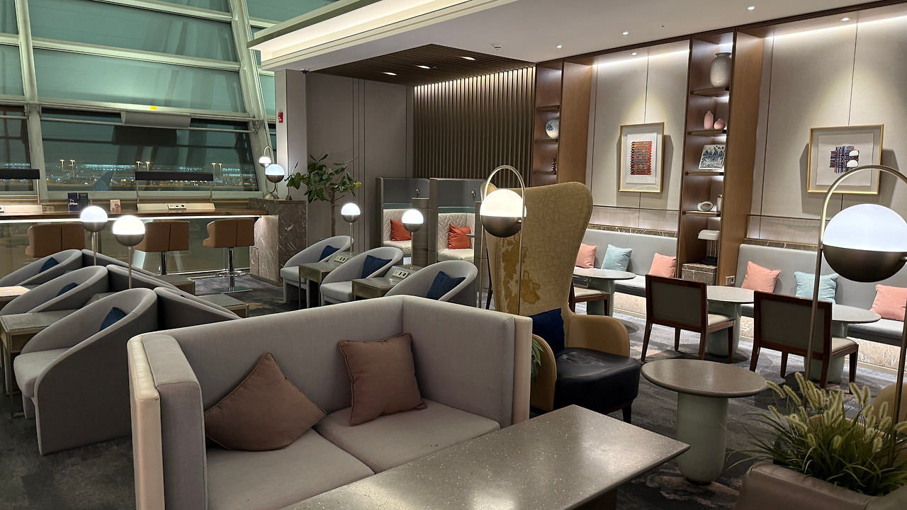인테리어가 고급지고 멋집니다. 편안한 느낌.. 아시아나 비즈 라운지는 넓기는 하지만 사람도 너무 많고 먹을 것도 애매해요.