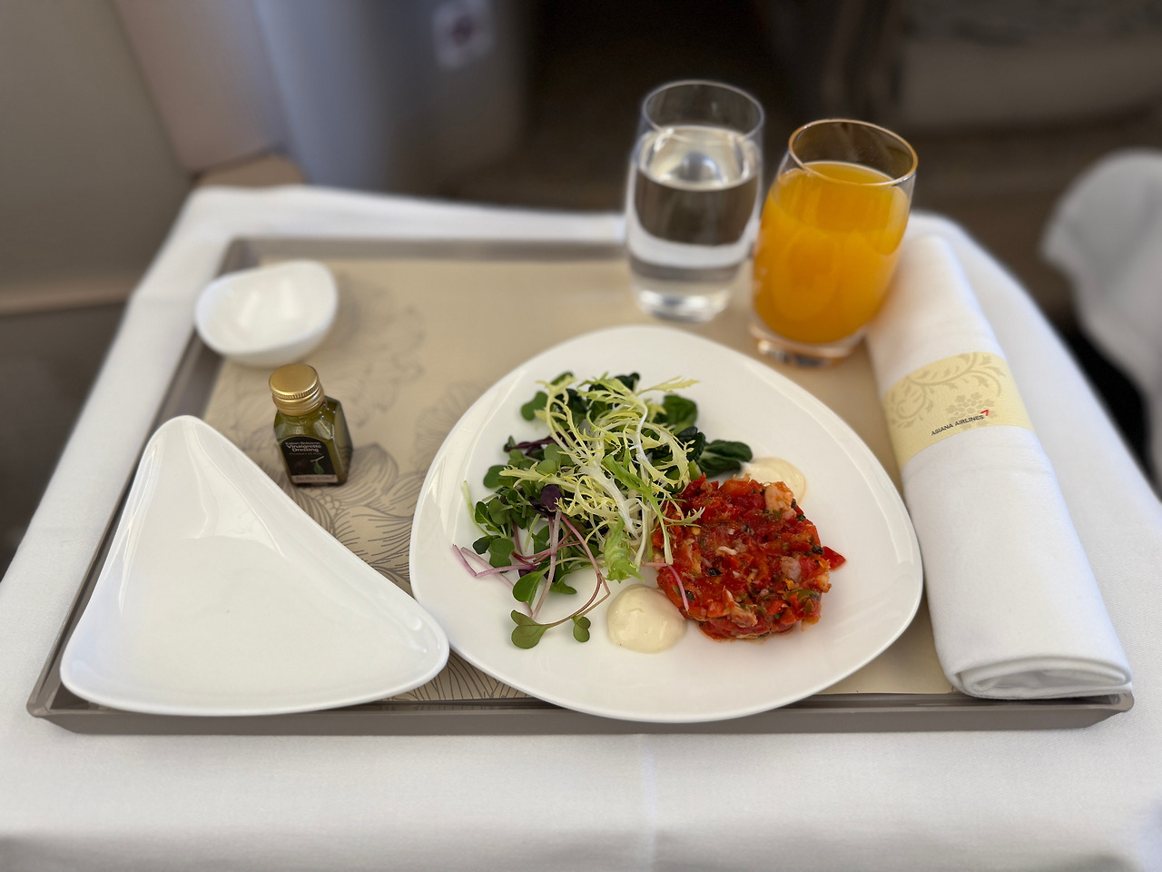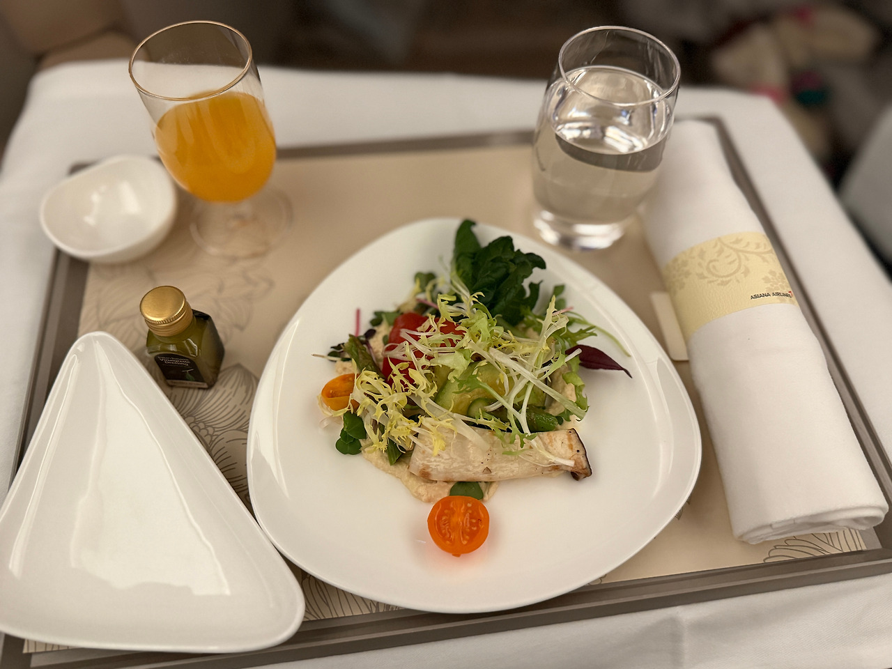 랜딩하기 전에 간단한 식사가 다시 시작됩니다. 샐러드부터 먹구요