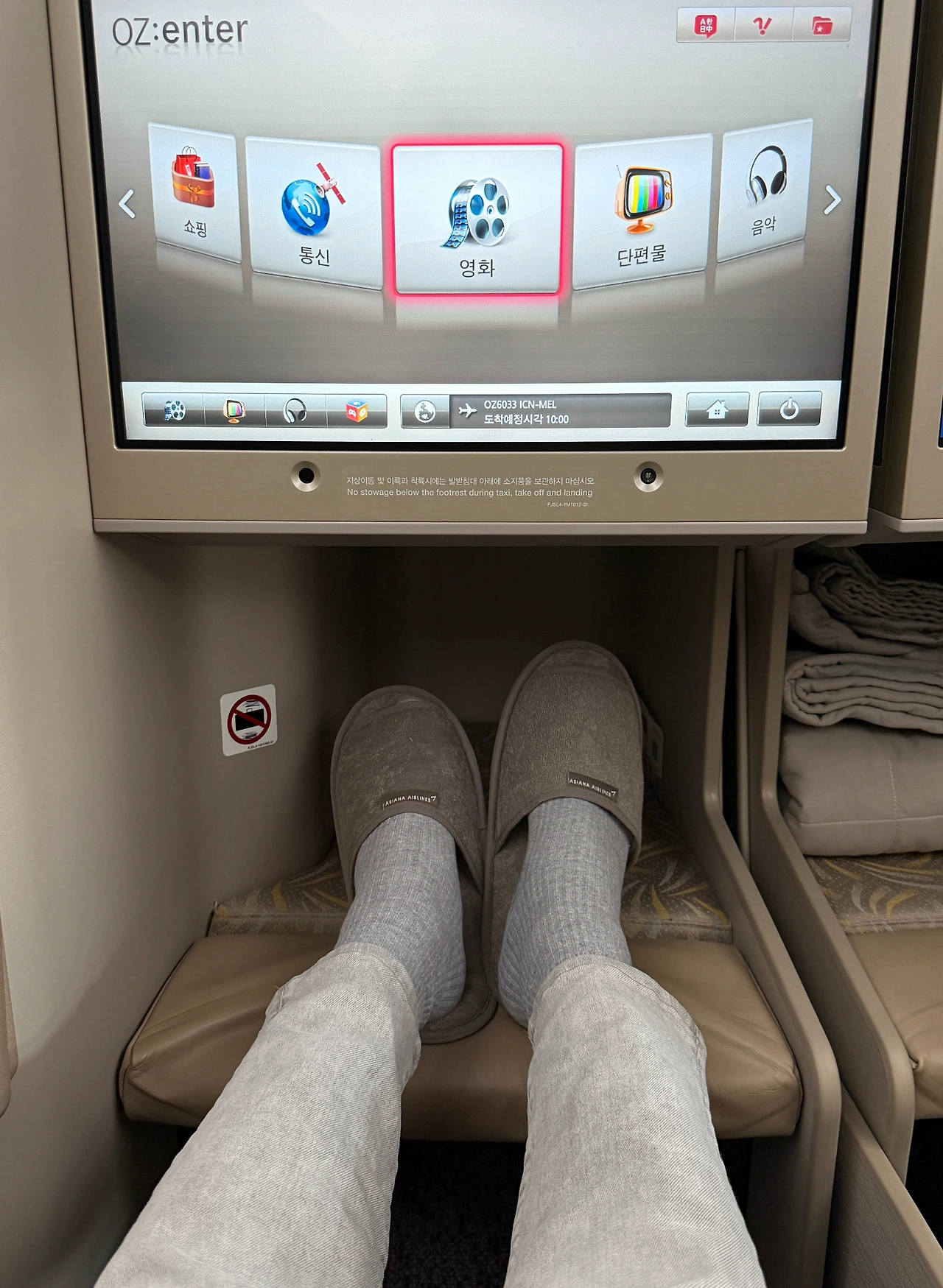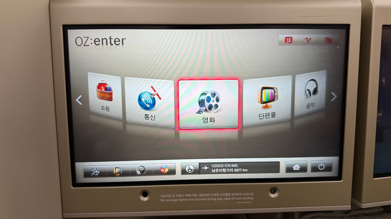 촌스러움이 묻어나는 OZ 인포테인먼트 ㅠㅠ 영화도 대한항공에 비해서 느낌상 거진 1/5도 안 되는 느낌이었어요. 신작 영화도 적어서 스마트폰에 저장한 넷플 드라마 보면서 온 거 같아요.