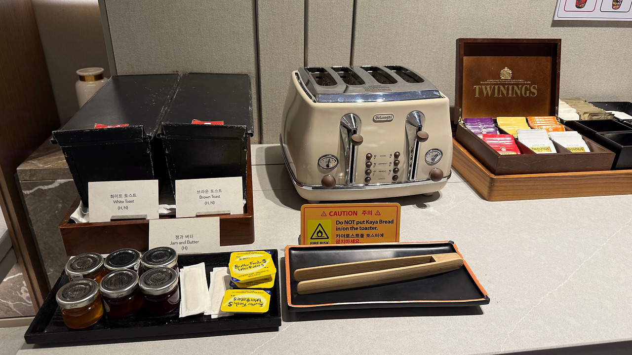 드롱기 토스터 구비되어 있는 것부터가 역시 일류 항공사 라운지 답네요
