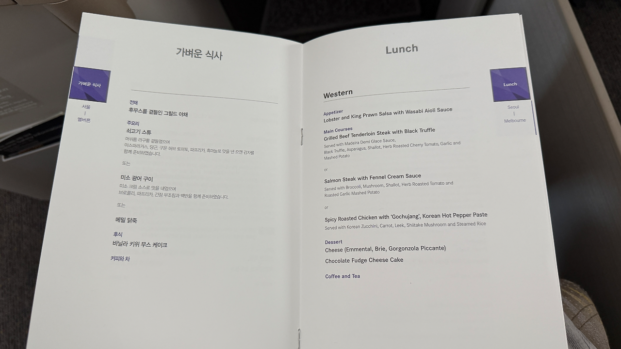 안녕하세요, 2월말 탑승했던 인천-멜버른 구간 비즈니스석 후기를 남겨보려고 합니다.