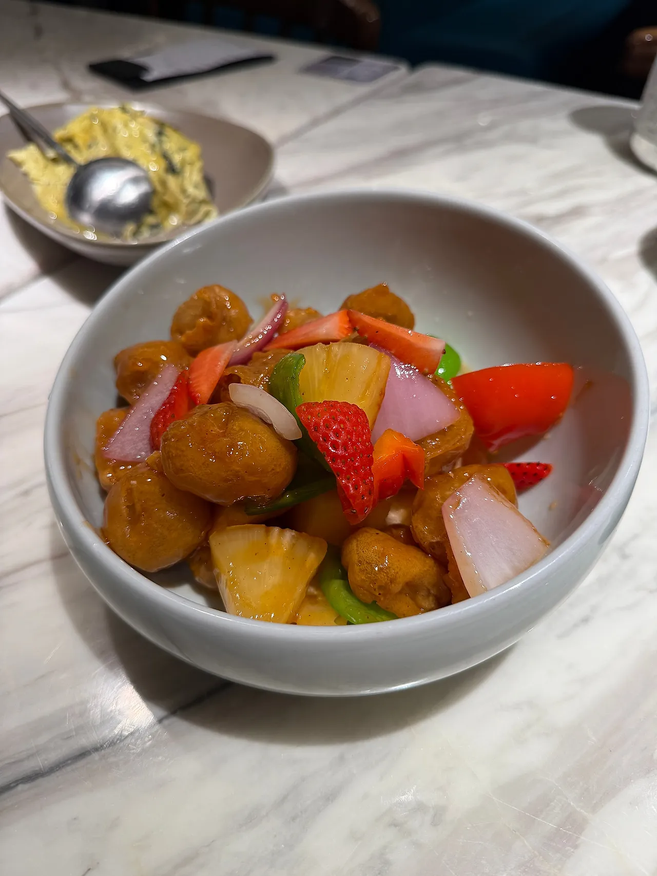 아이랑 같이 먹으려고 시킨 과일 탕수육입니당