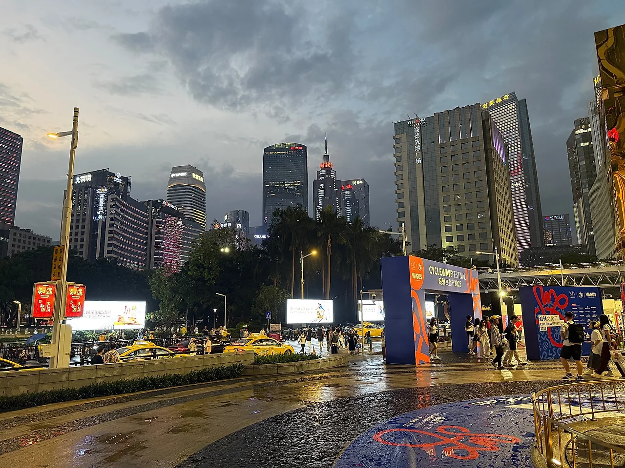 직선거리로 광저우 타워가 펼쳐지는 광장.