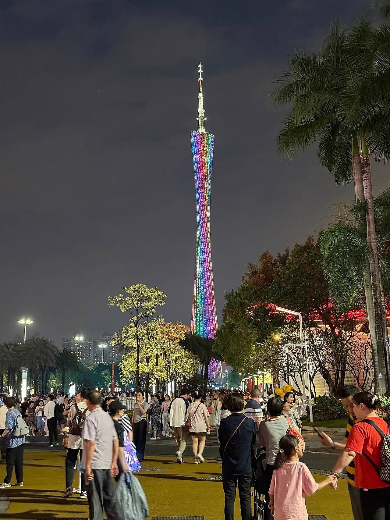 광저우 명물 광저우 타워. 시간대 별로 색이 많이 바뀌어요