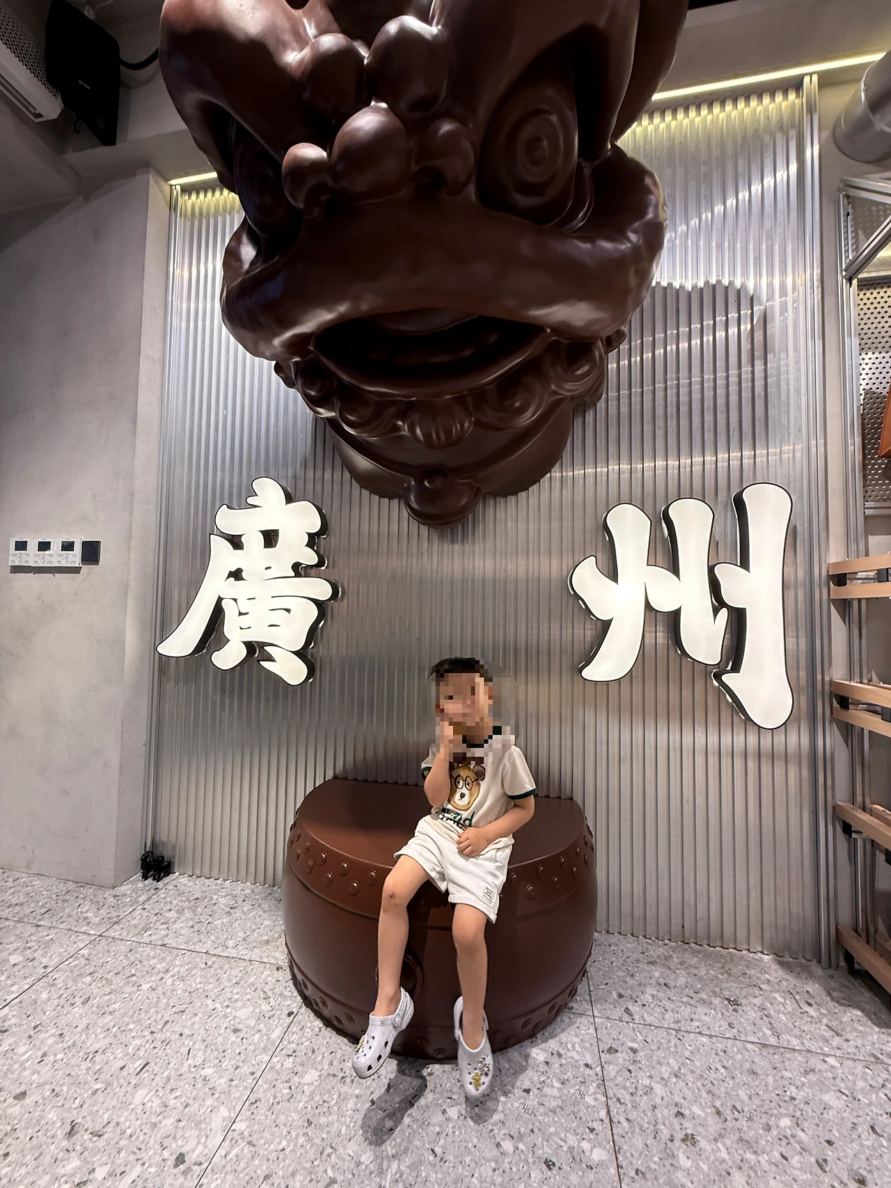 초콜릿 사자상 과 광저우 글자 앞에서 사진 한 컷!