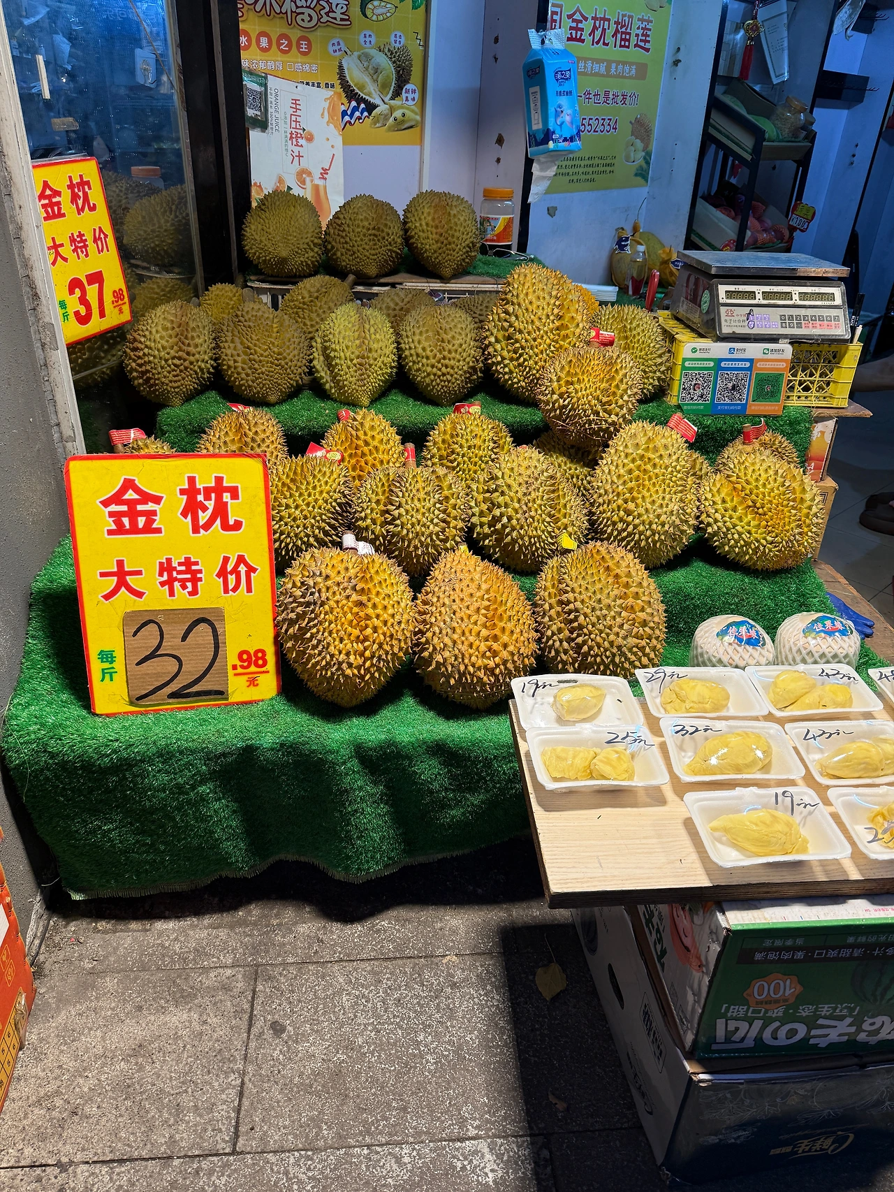 만링광장 나와서 저녁 먹으러 베이징루로 걸어서 이동해 봅니다. 가는 길에 발견한 두리안.