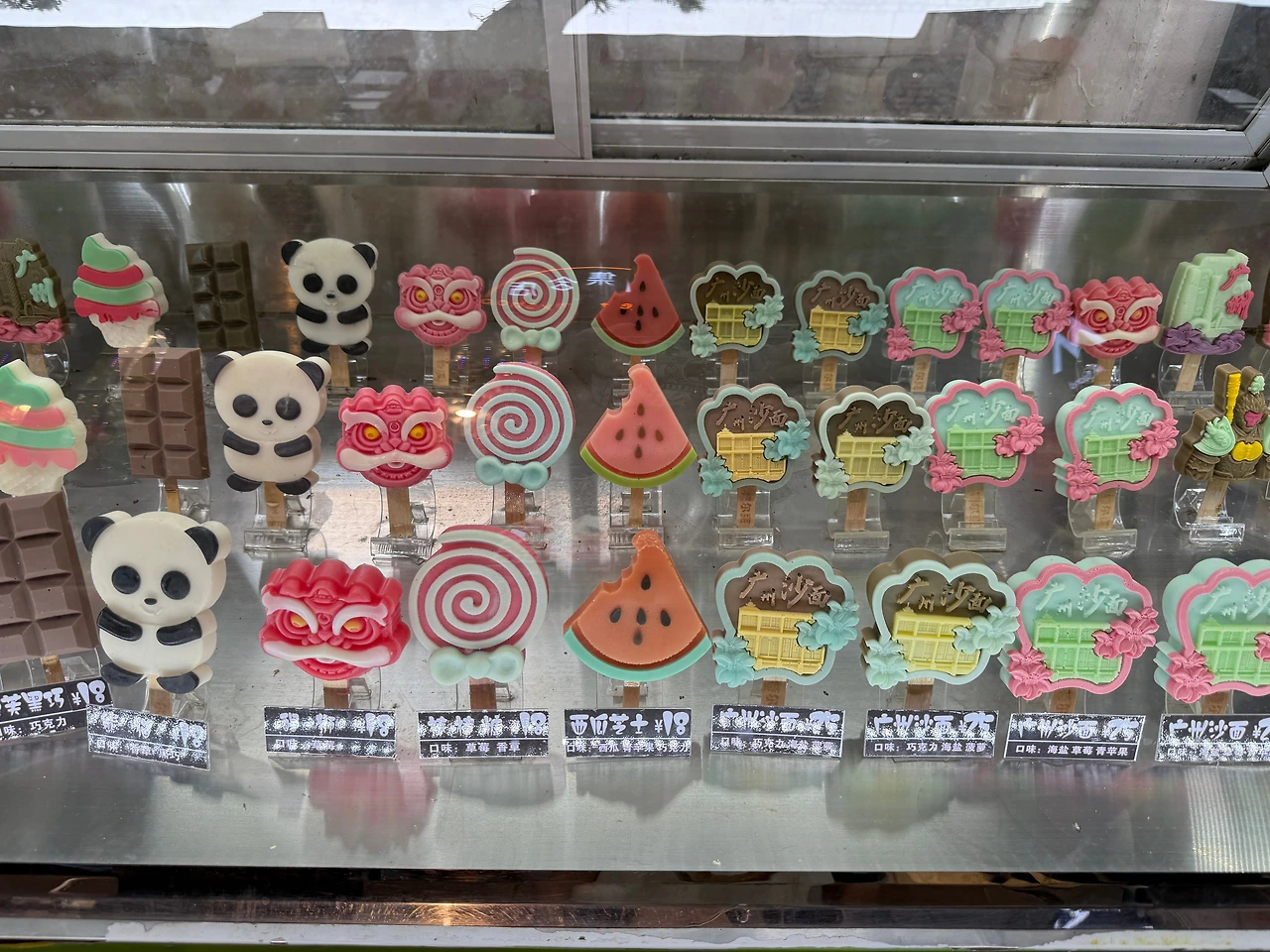 중국은 시내에서 저렇게 관광지 특징과 캐릭터를 살린 아이스크림을 많이 팔더라구요. 매번 아이가 사달라고 해서 진땀 뺐어요.