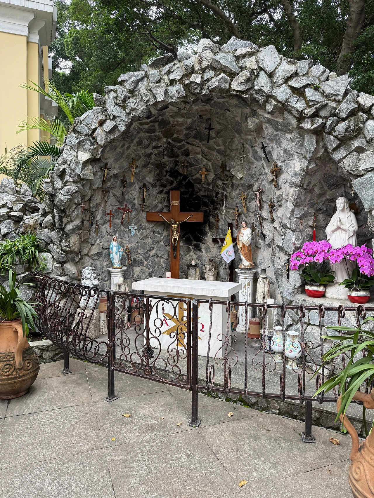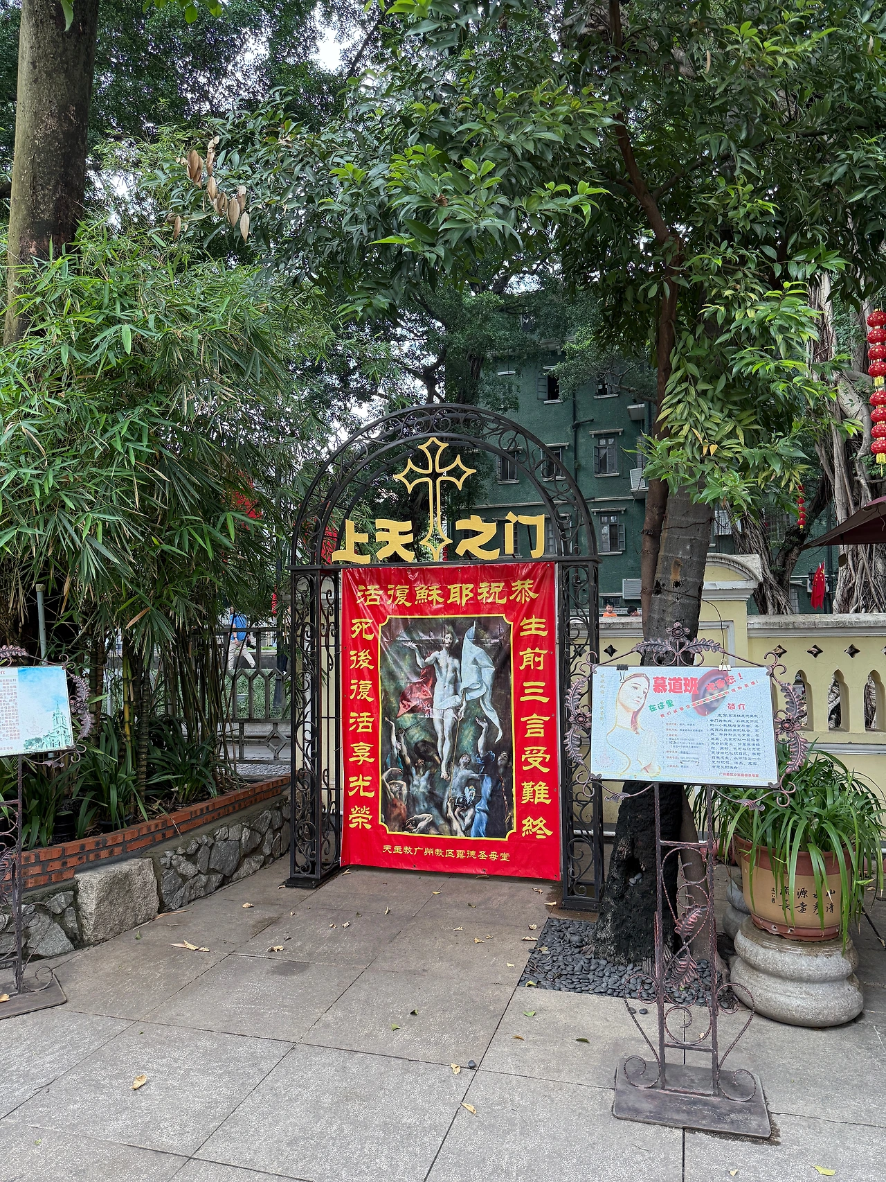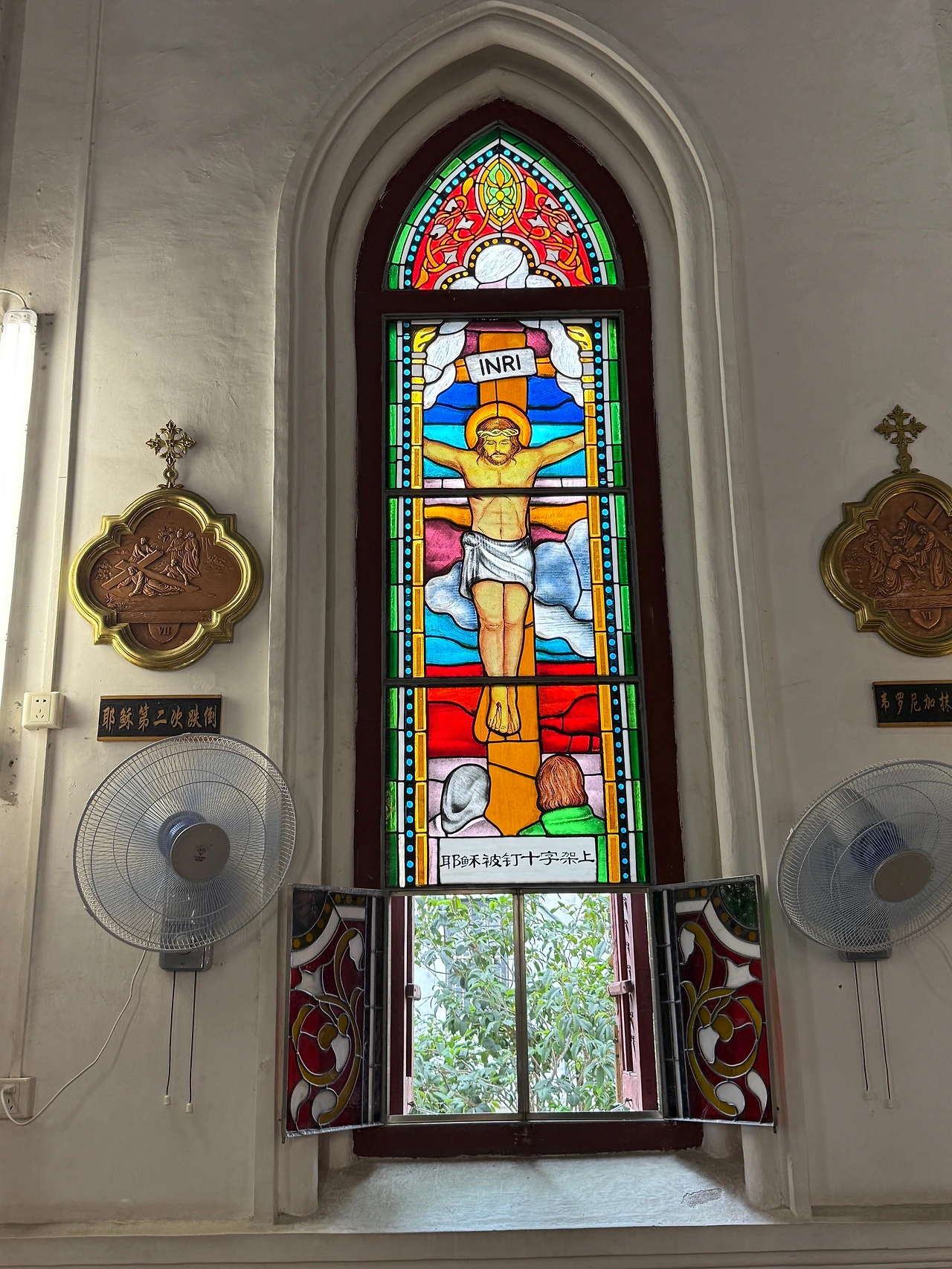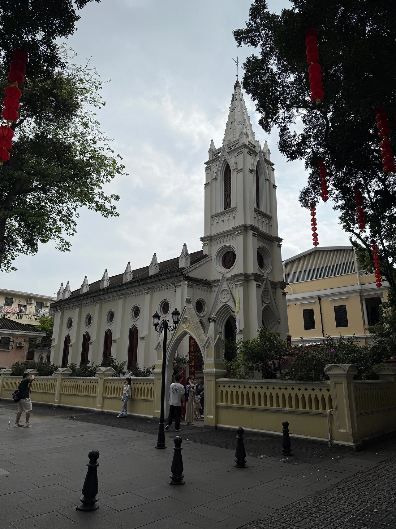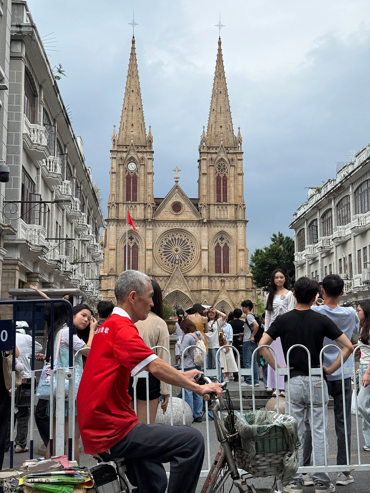 샤미앤다오에 있는 성당은 섬의 고요한 분위기와 어우러져 특별한 존재감을 드러냅니다. 이곳은 대표적으로 루르드 성모 교회(露德圣母堂)가 있는데, 고딕 양식의 흰색 외벽과 스테인드글라스 창문이 인상적인 아름다운 건물입니다.