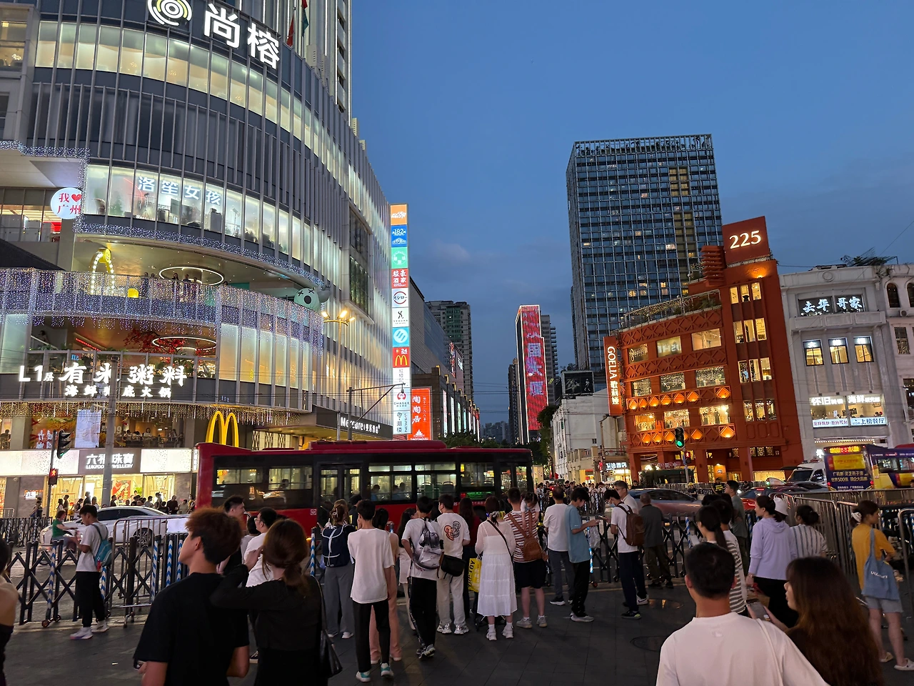 가장 번화가인 베이징루에 도착했어요. 광저우의 명동? 이라고 보시면 됩니다. 규모도 엄청 크고, 사람도 정말 많습니다.... 그래도 연휴 인파 치고는 감내할만한 수준이었던거 같아요.