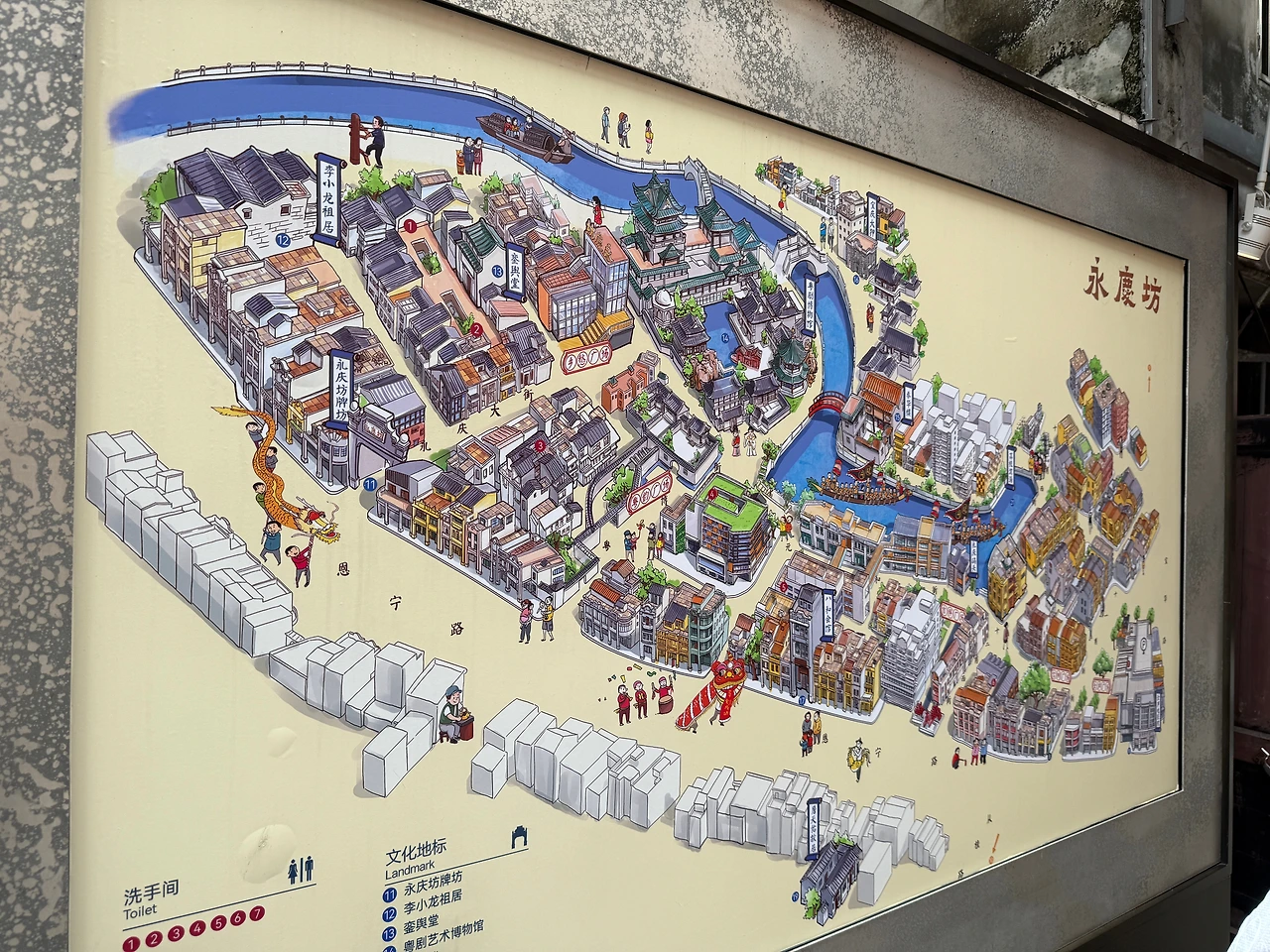건물 외벽에 아름답게 장식된 용침방 글자와 나무 부조에요. 색감이 진짜 실물이 이뻤어요. 냉장고 마그넷도 그렇고 아이스크림도 그렇고 광저우 디자이너와 예술가들이 열일하고 있다는게 느껴집니다.