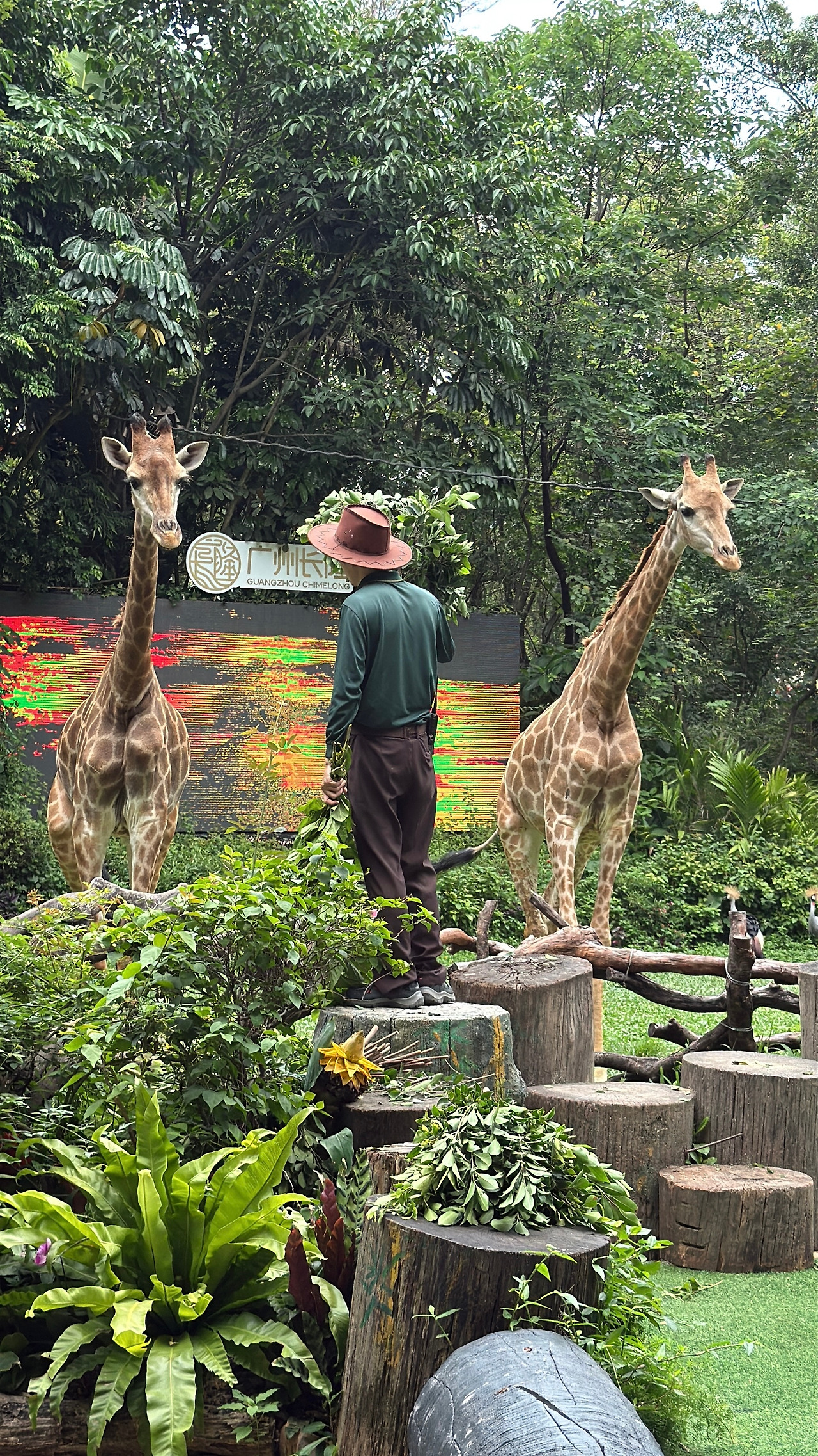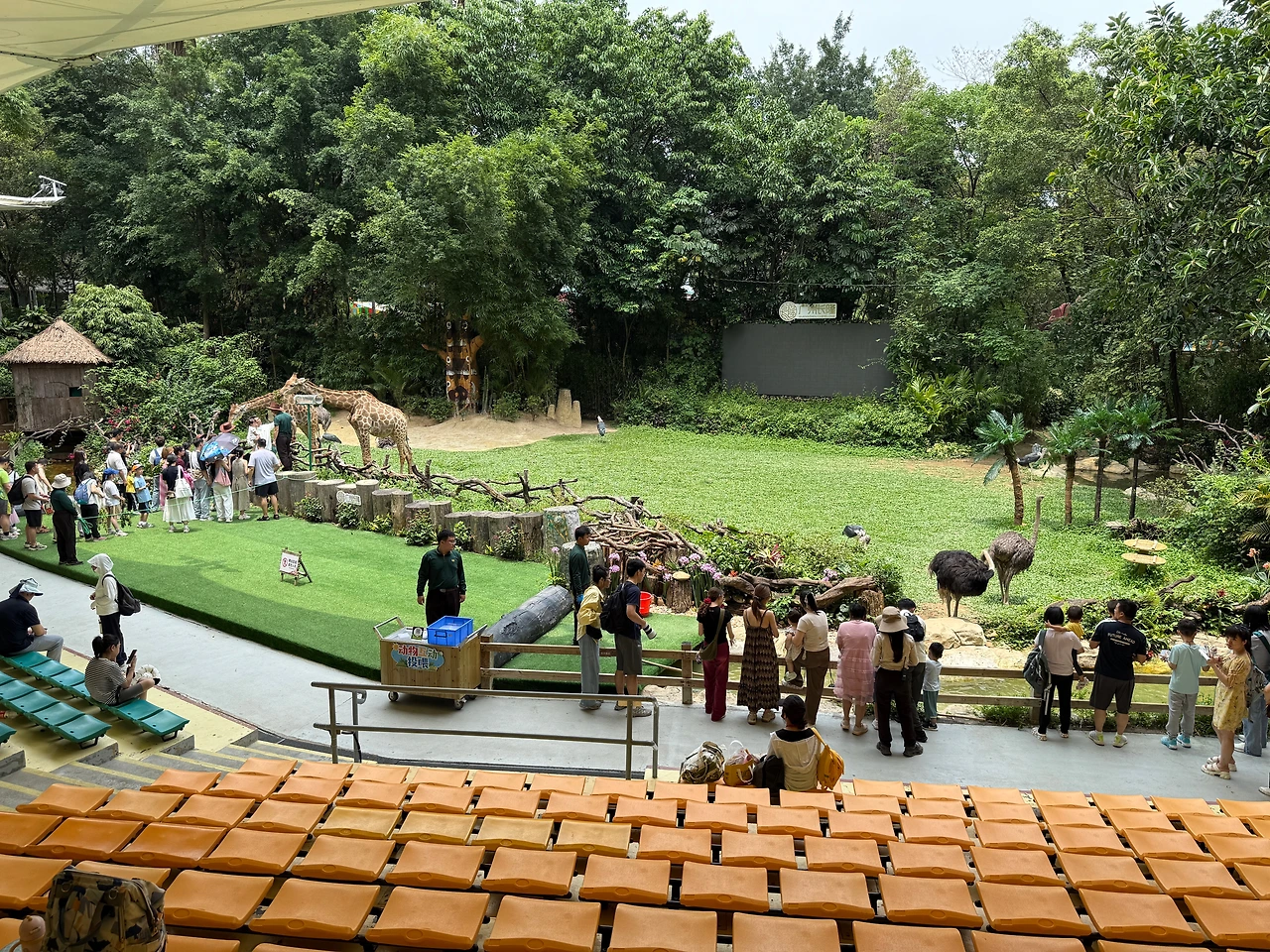 쇼가 끝나면 클라이맥스에 나온 기린들에게 직접 먹이를 주는 체험이 가능합니다. 눈치껏 빨리 달려나가서 오래 안 기다리고 하는데 성공. 35위안이었나 (우리돈 7천원) 정도 였고 위챗 결제 했어요.