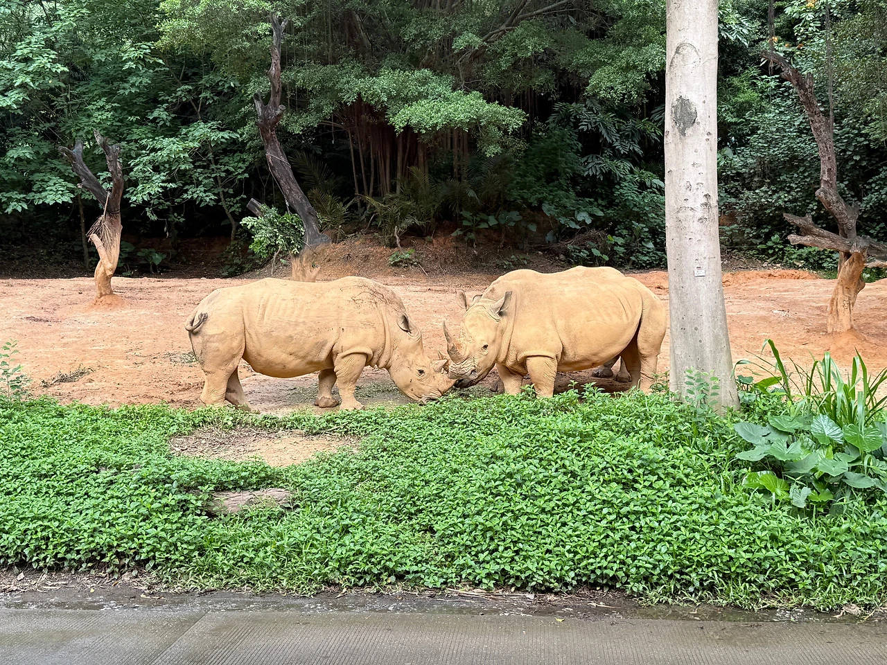 코뿔소들도 많네요. 광저우가 워낙 늘 따뜻하니 이렇게 큰 사파리를 운영하는 게 부담이 없는 거 같아요.