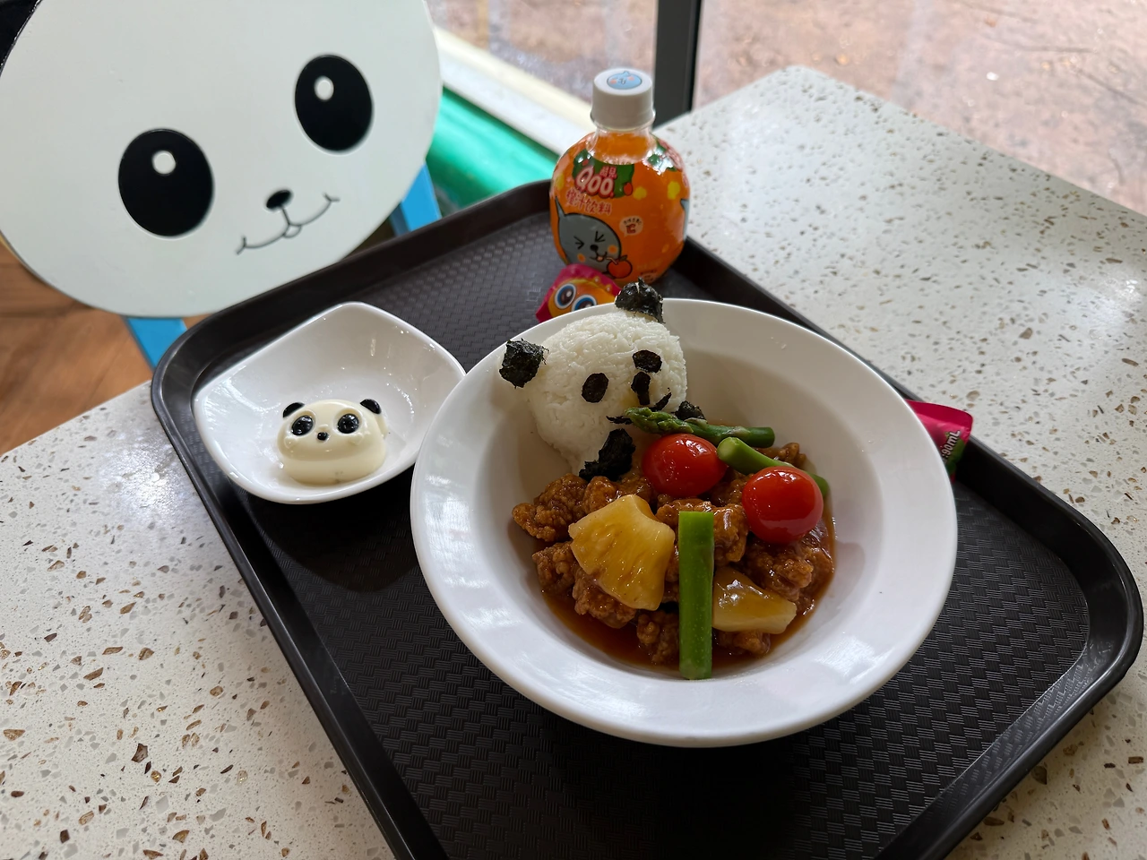 팬더 마을에 있는 식당에 들어갔어요. 키즈 메뉴 너무 귀여운거 아닌가요 ㅋㅋ 아이는 요 메뉴, 저는 파스타 시켜서 잘 먹었습니다.