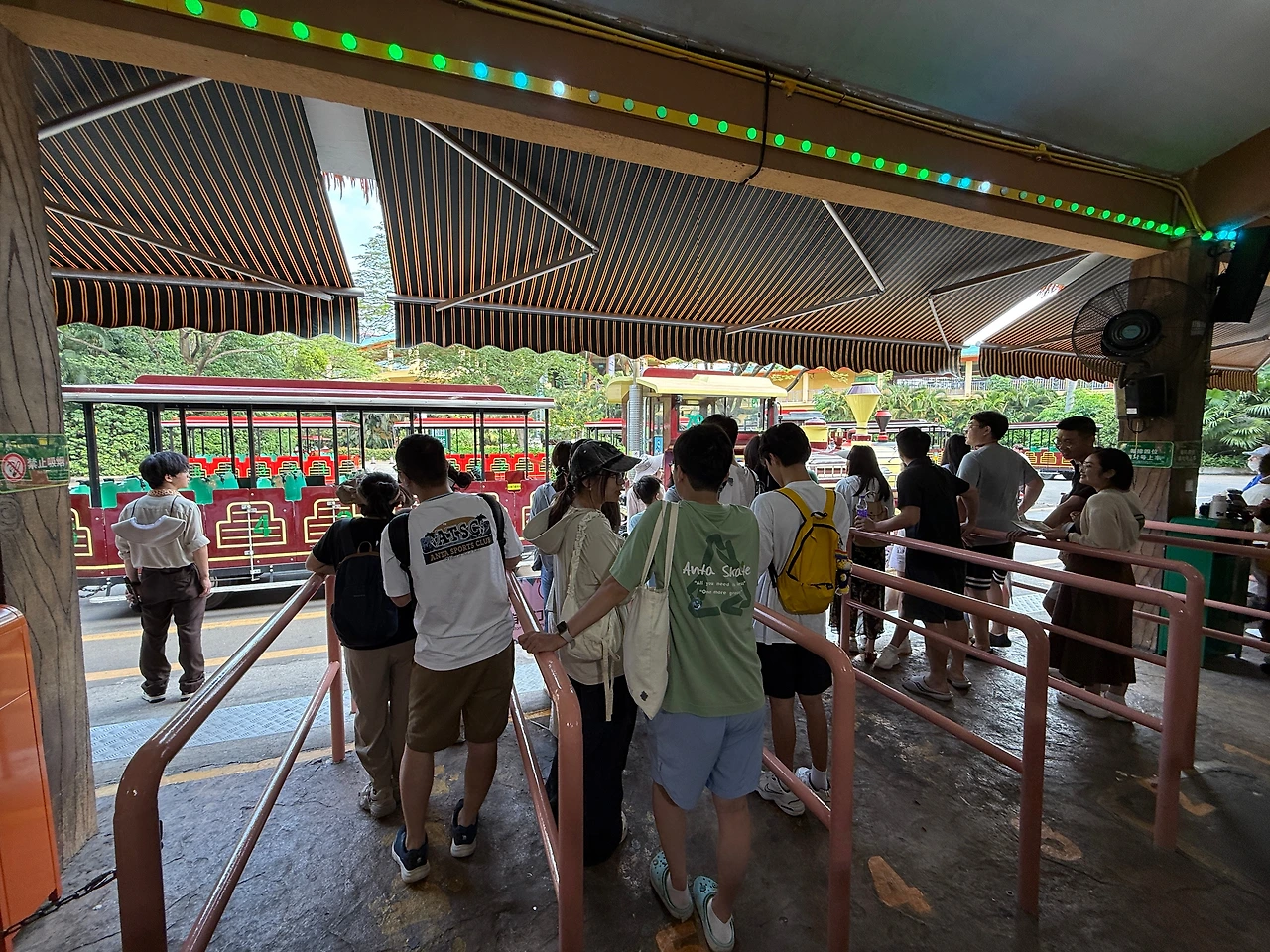입장하자마자 우측으로 트램 타러 달리는 사람들!이 있어 졸졸 쫓아가서 타면 됩니다. 성수기에 트램도 2~3분 간격으로 운행해서 엄청 긴 줄도 금방 빠지긴 해요