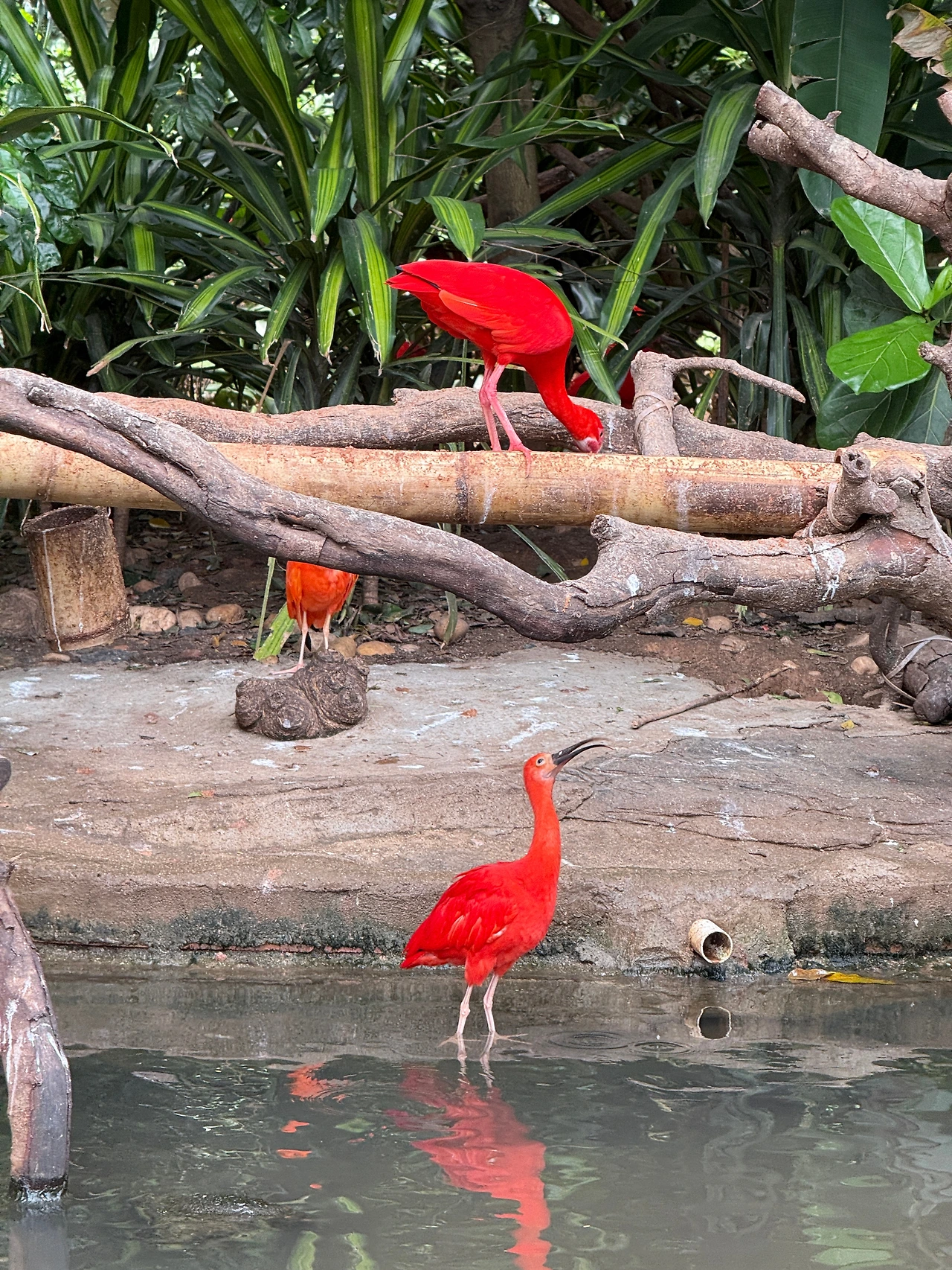 색이 너무 강렬해서 찍은 새. 챗GPT에게 물어보니, 남아메리카 북부, 특히 베네수엘라, 트리니다드 토바고 등의 습지나 강 주변에 사는 붉은따오기 라고 알려줘요. 사진만 보고도 정답을 알려주는 AI. 먹이로 갑각류, 작은 물고기, 곤충을 먹는데 주로 먹는 크릴이나 새우 등에 있는 카로티노이드 성분 때문에 털이 붉다고 해요.