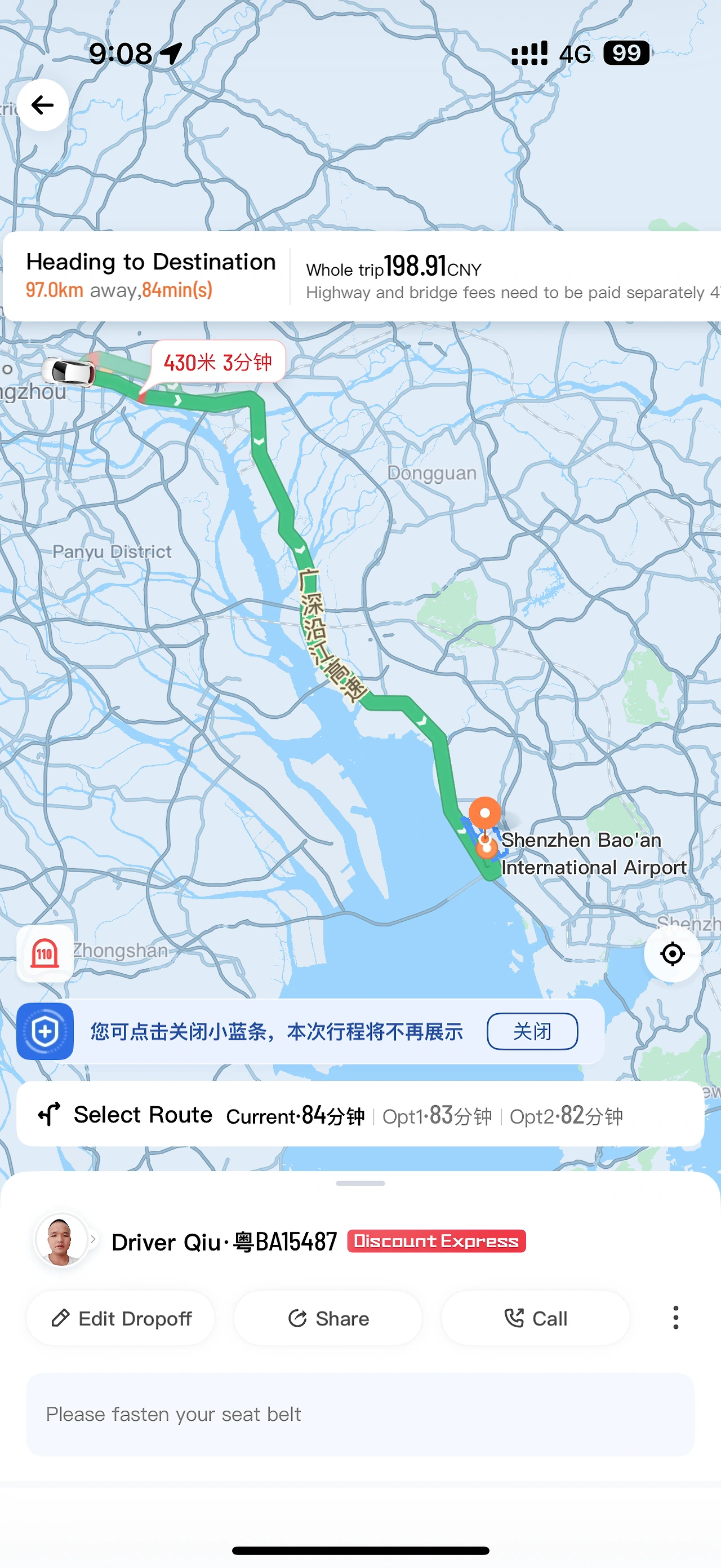 다음날 4일차 오전에 공항으로 나섭니다. 광저우 -> 인천 표가 매진이고 못 구했는데 다행히 심천 -> 인천 표가 있어서 호텔에서 DiDi를 불러서 1시간 여 달려 갑니다. 톨비까지 해서 대략 5만원 정도 택시비 나왔어요.
