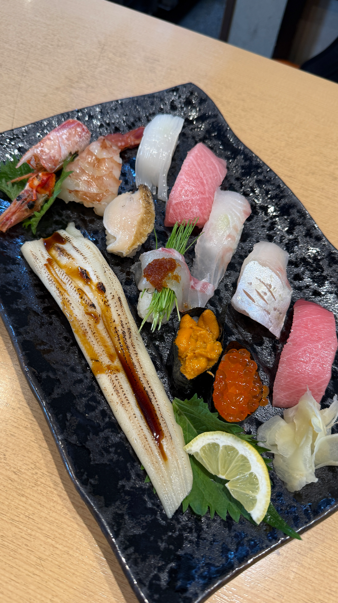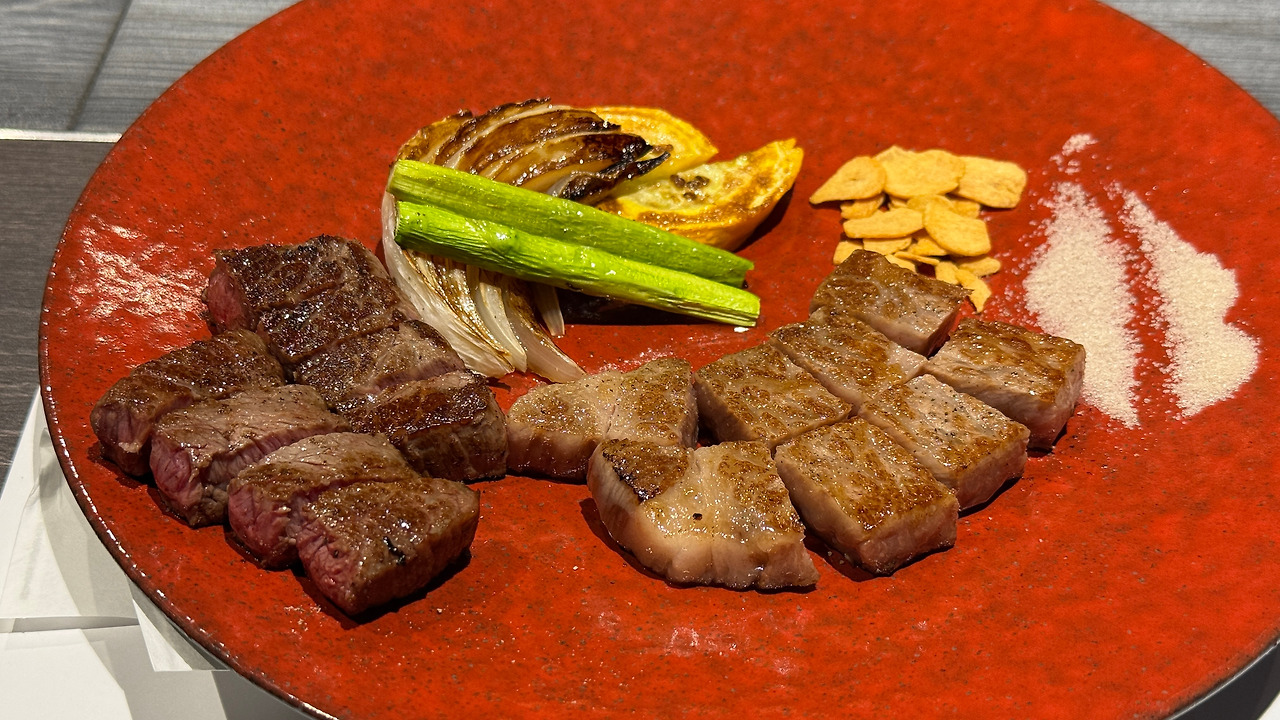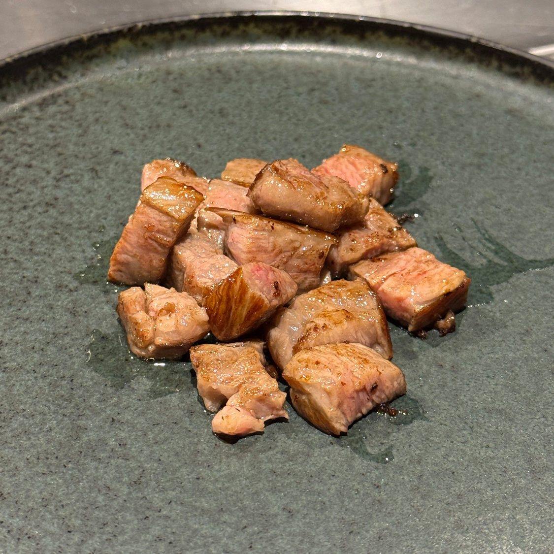 코스요리를 시켰고 (고베규 A5 로스 하프) 아이랑도 같이 먹을거라 추가로 드라이에이징 숙성 고베규 하프 단품도 시켰어요. 둘 합쳐 세금 포함 25,000엔 정도 나왔습니다 ㅎㄷㄷ 그 다음부터는 조촐하게 식사하고 다녔어요