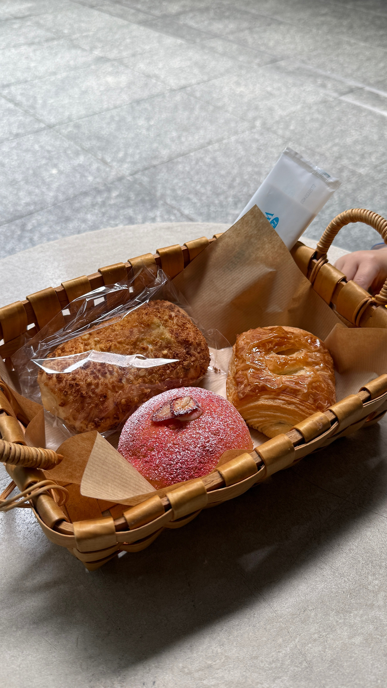 현지인들도 아침부터 빵 사러 줄 설 정도로 사람이 많아요. 이미 자리는 만석인데 다행히 바깥에 테이블 있어서 잠시 앉아 먹을 수 있었어요