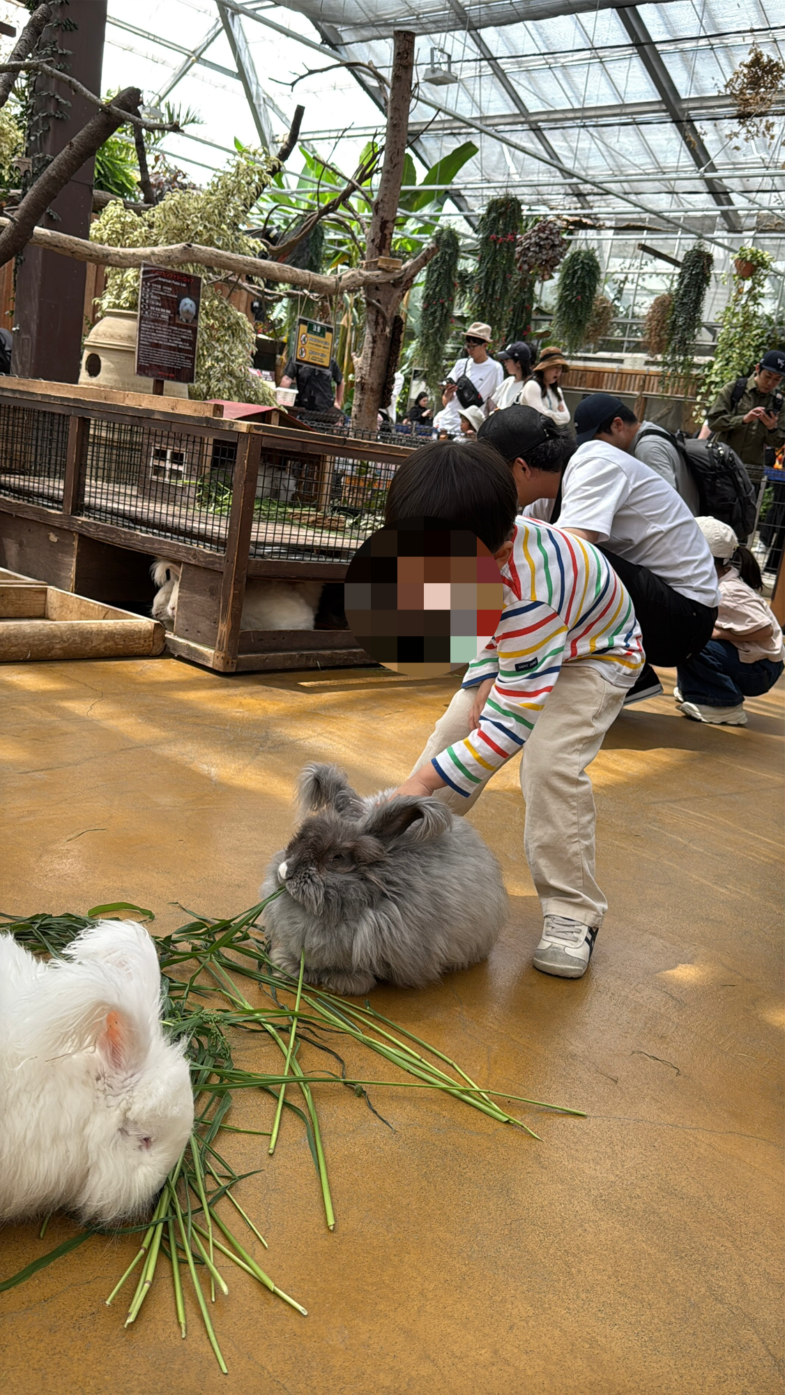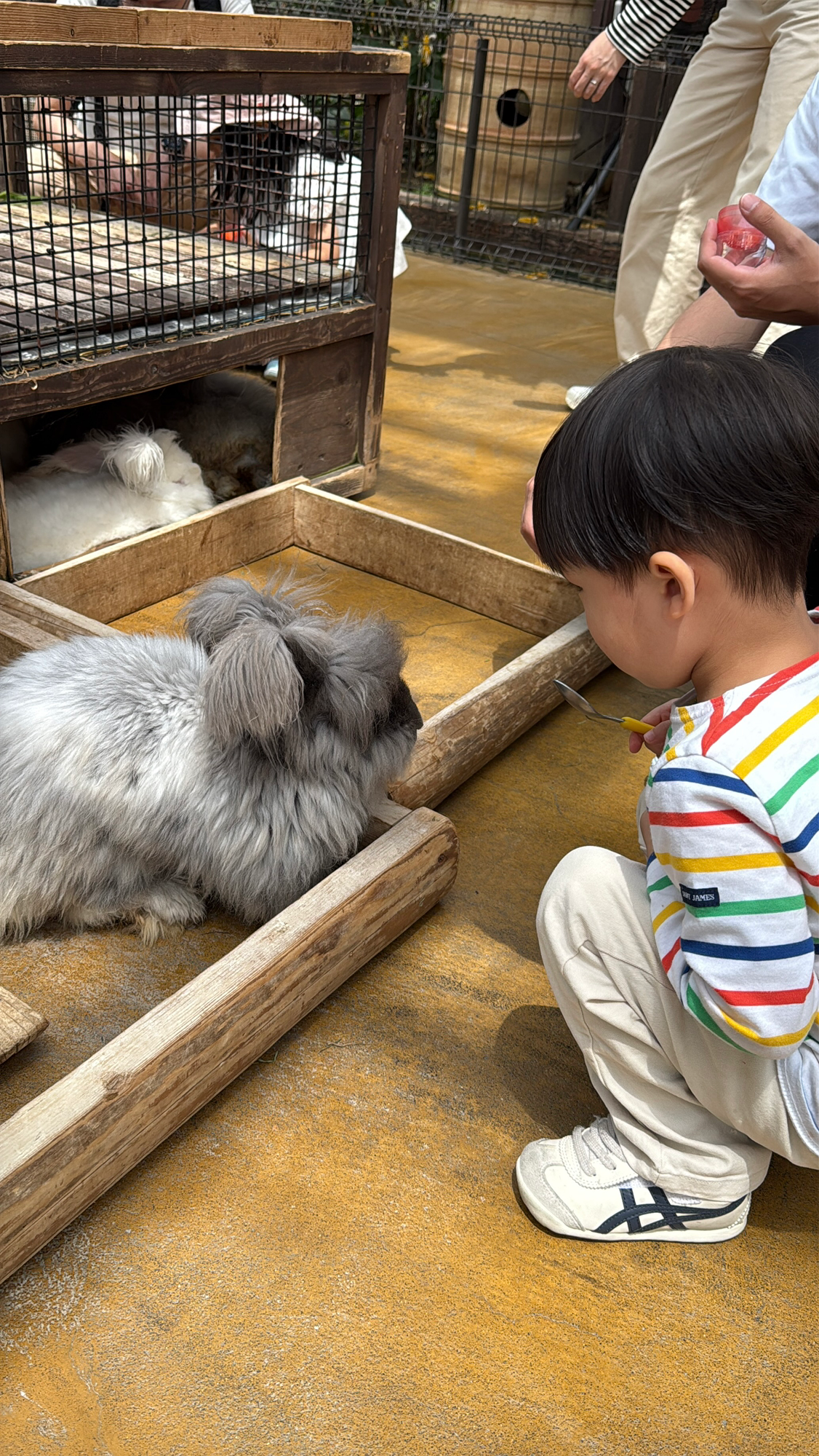 토끼체험 시간이 되어서 들어갔어요. 여기는 토끼 먹이 100엔 주고 사서 직접 줄 수도 있고. 부드럽게 털을 쓰담쓰담 해줄수도 있어요