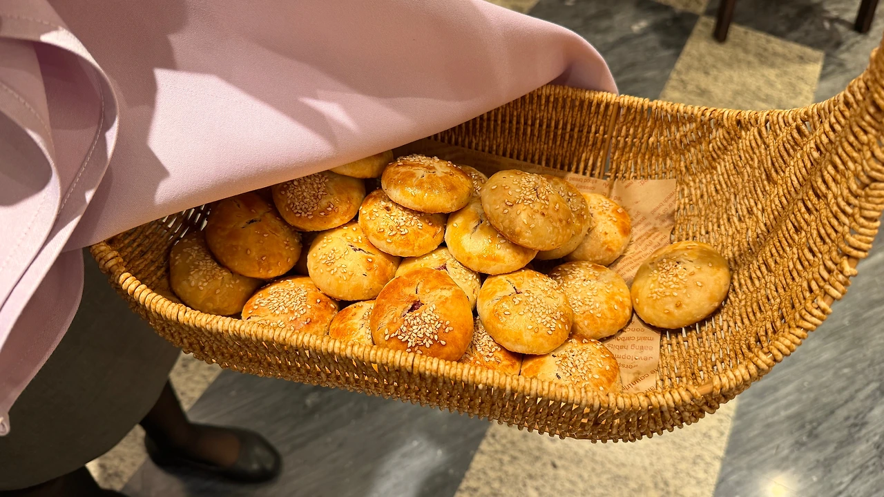 식당 매니저가 테이블 돌아다니면서 쿤밍 특산품인 장미빵을 권합니다. 중국어로 시앤후아삥. 실제 식용 장미꽃잎이 들어간 거라 입에 베어무는 순간 퍼지는 장미향이 좋아요. +