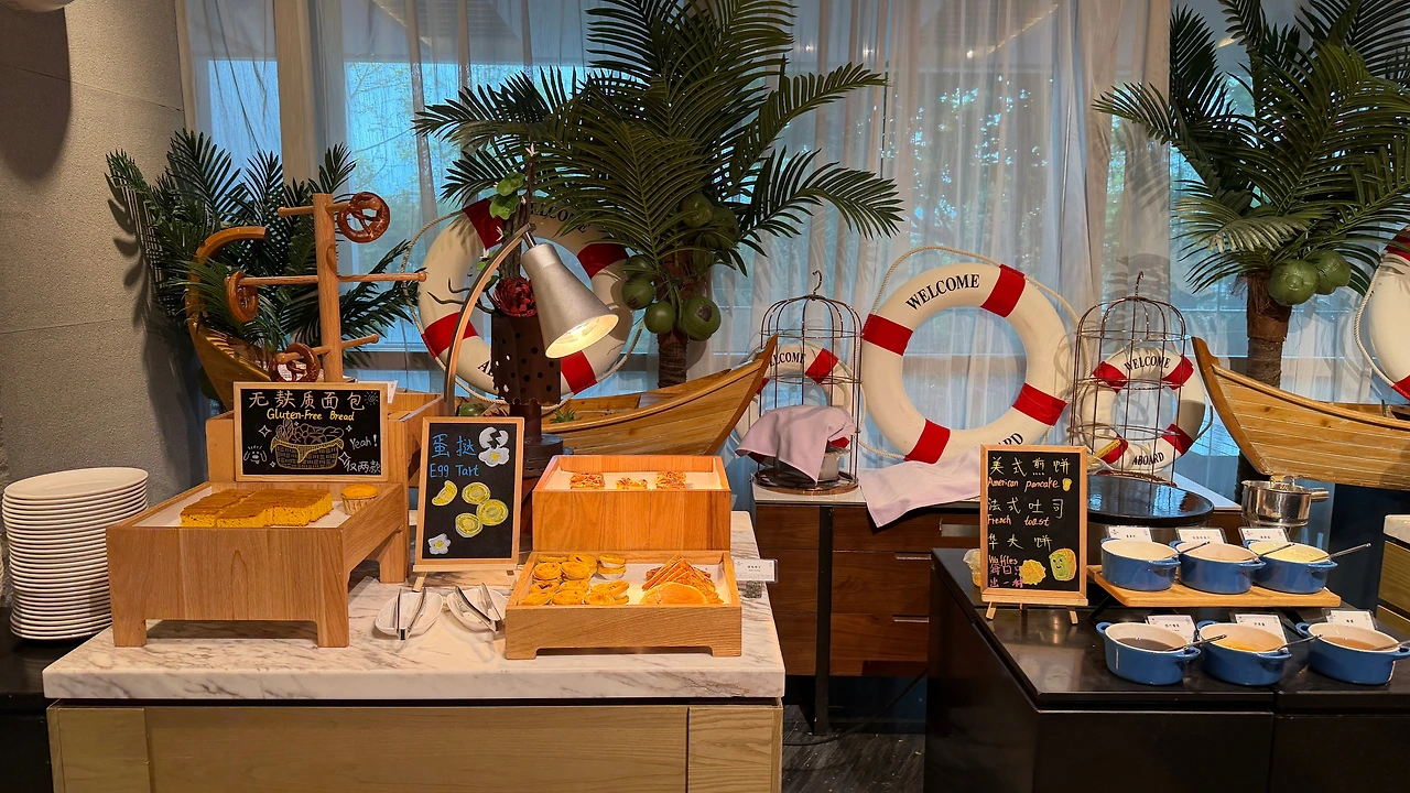 조식 뷔페 1인 무료를 해주었어요. 원래 조식 뷔페 가격은 성인 128위안이라서 2명이면 256위안인데