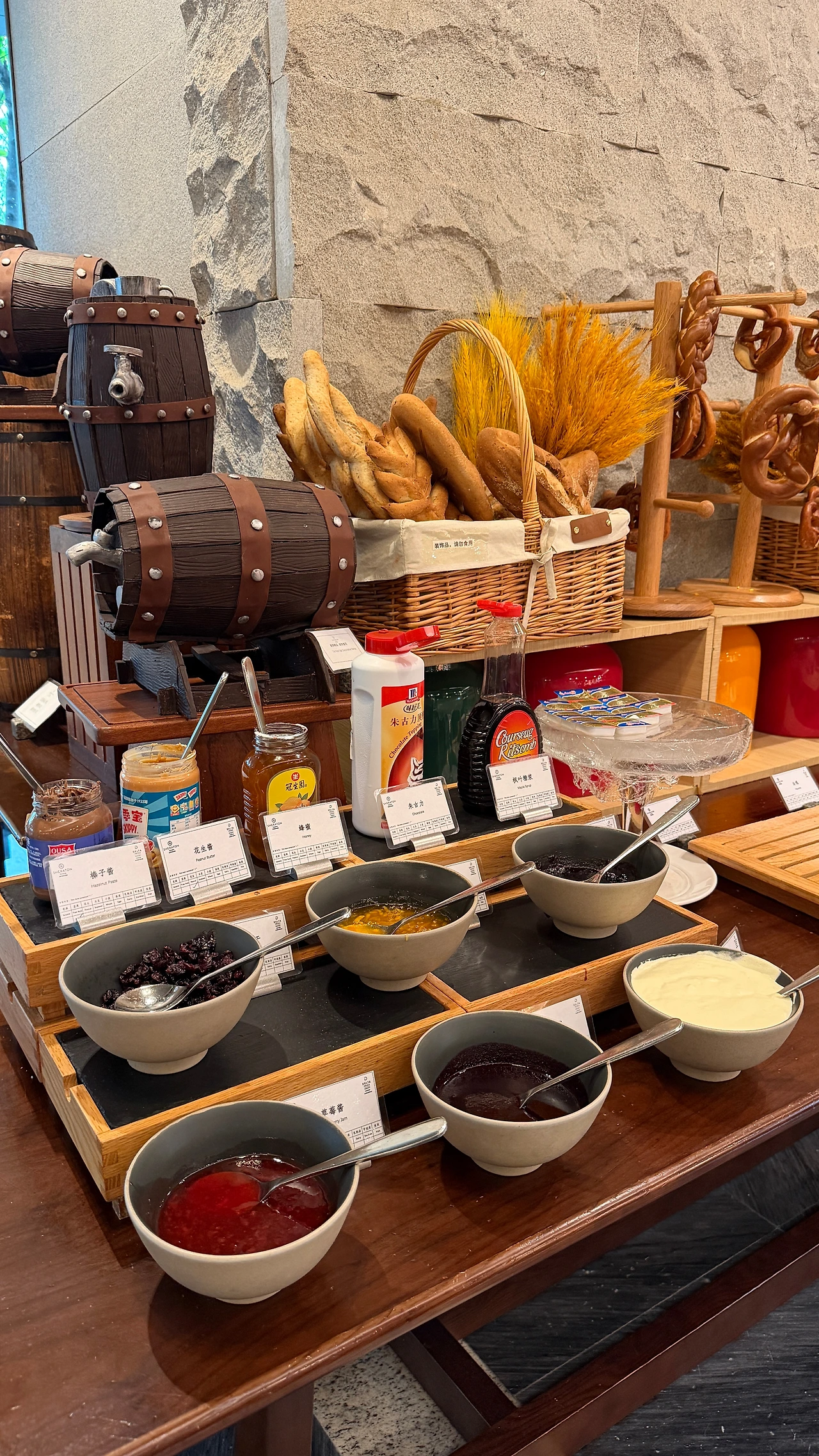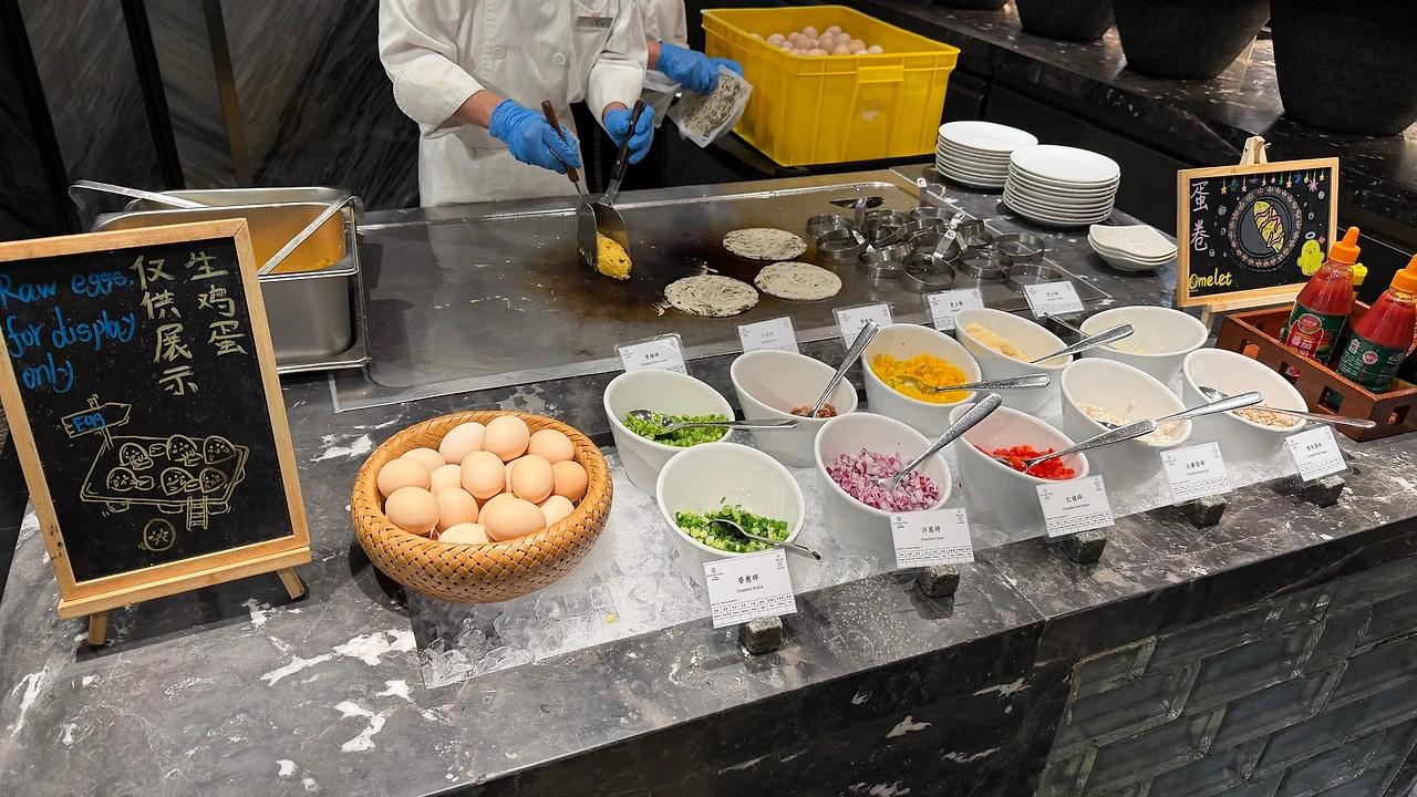 조식 뷔페 식당 자체가 엄청 크고 넓어서 쾌적해요. 묵는 동안 한 번도 기다리거나 자리 부족하거나 그러진 않았네요. 아마 국경절 연휴 끝난 직후라서 더 그랬을거 같아요.