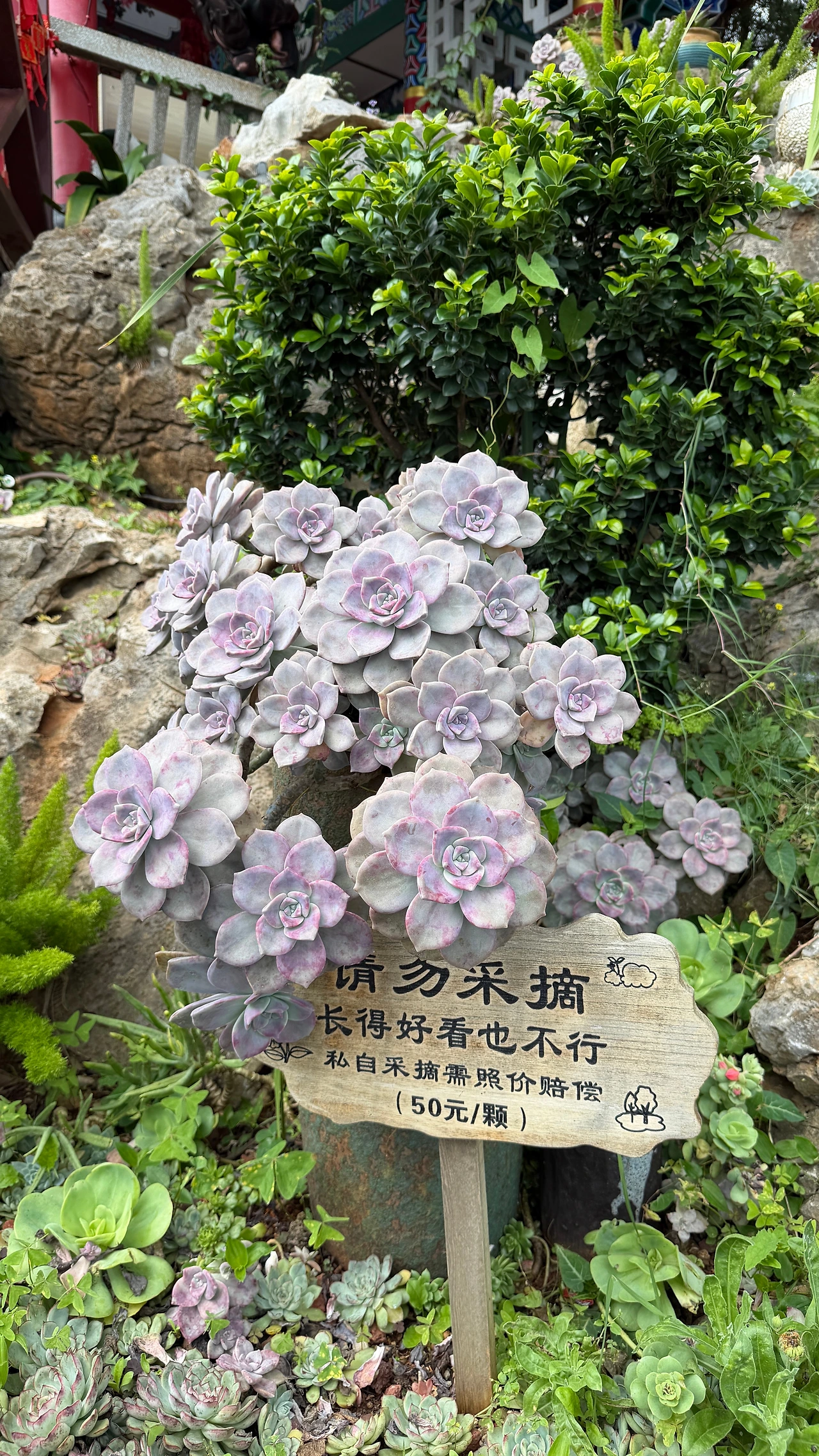 예쁜 다육이도 시선 강탈~ 하나라도 따면 50위안 벌금이라는 경고 내용이에요.