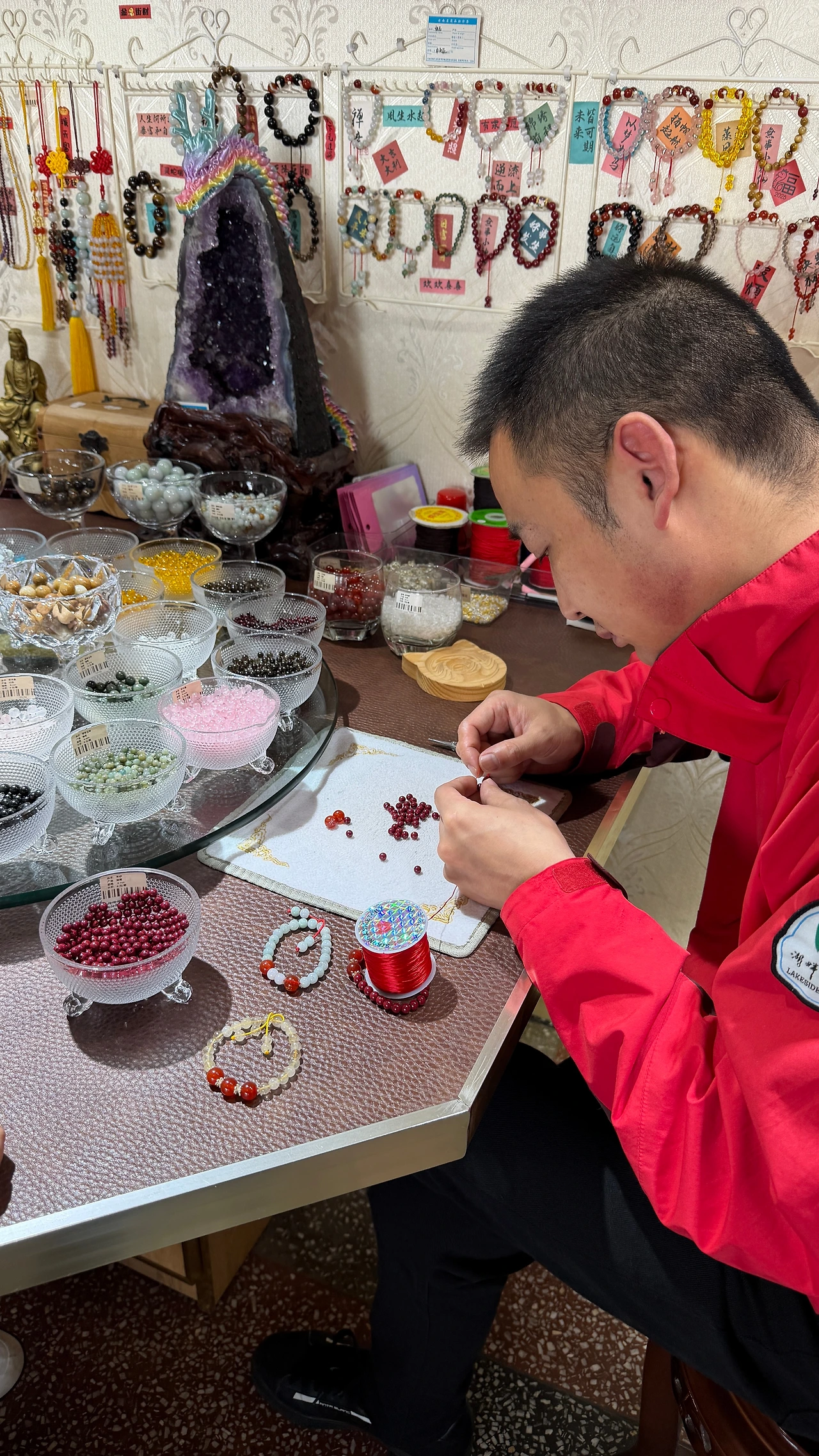 기념품과 음료를 파는 곳이 있는데 이름 한자로 팔찌를 만들어주는 코너가 있어서 아이 한자 넣어서 기념으로 하나 만들었어요. 비즈가 비싼 것부터 저렴한 것까지 다양하게 있는데 저는 적당한 색깔로 해서 16알 정도로 만들었는데 다 합쳐서 2만원 정도 낸거 같아요. 아이가 엄청 좋아했어요 (나중에 유치원 가서 잃어버리기 전까지는요 ㅠㅠㅠㅠ)