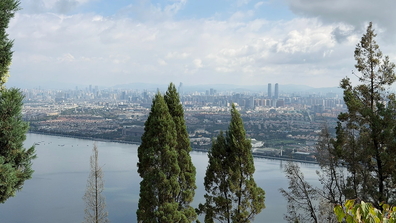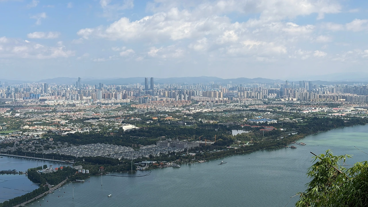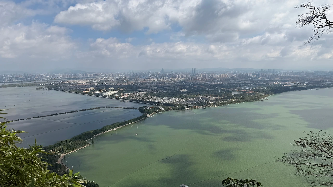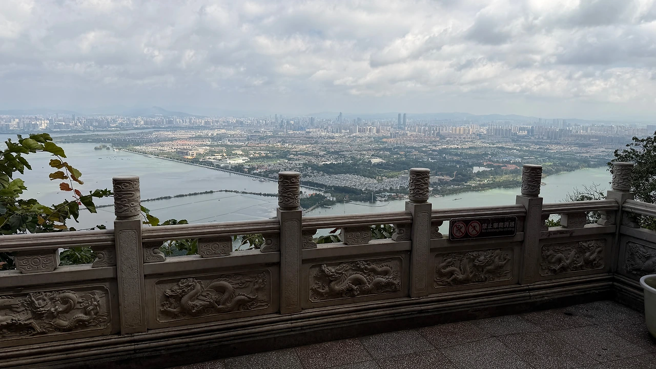멀리 보이는 쿤밍 시내와 뎬츠 호수 뷰가 좋았어요.