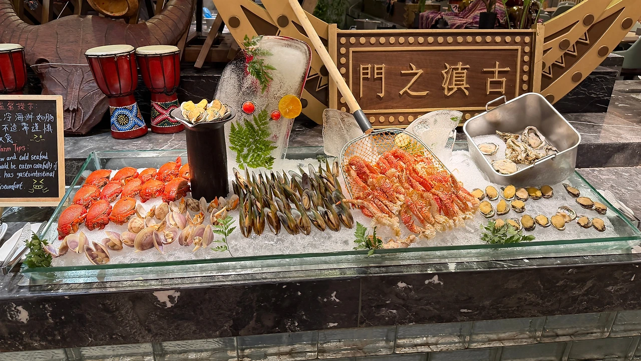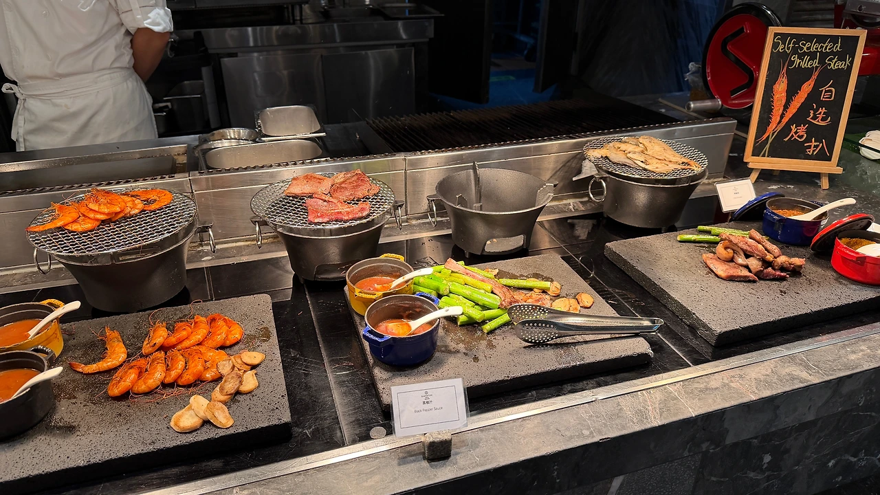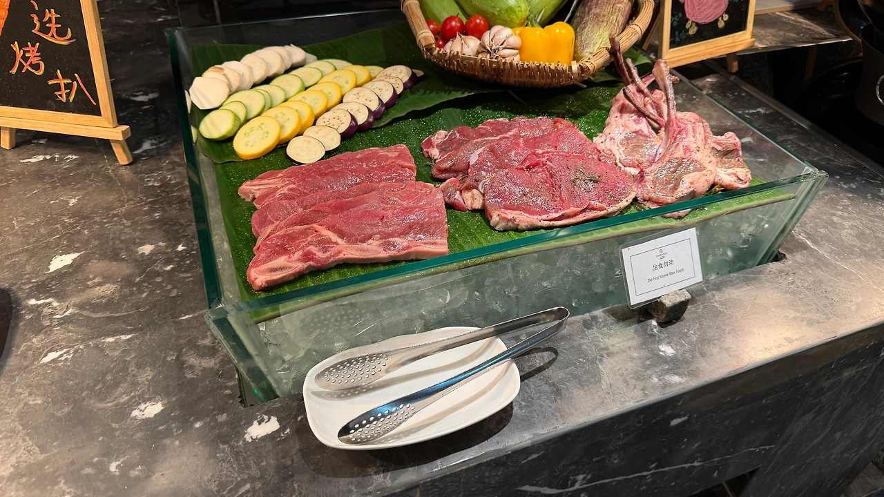 저녁은 쉐라톤 쿤밍 석식 뷔페를 먹기로 합니다. 120CM 이상인 아이는 98위안인데 아이는 103CM 라서 무료로 먹구요 (사실 나이도 어리니깐요.. ㅋ) 성인은 198위안이라서 좋은 가격이라고 생각하고 들어갔어요.