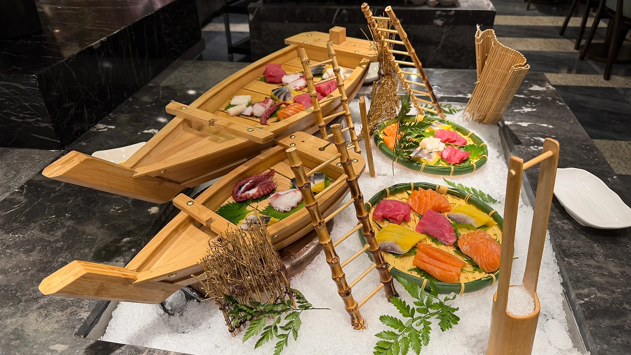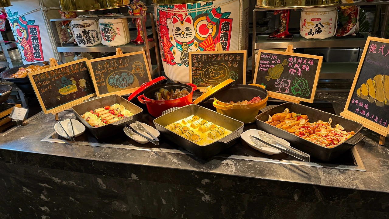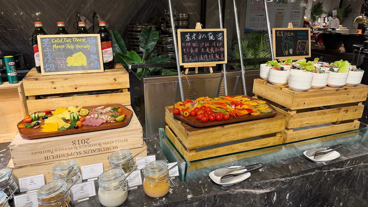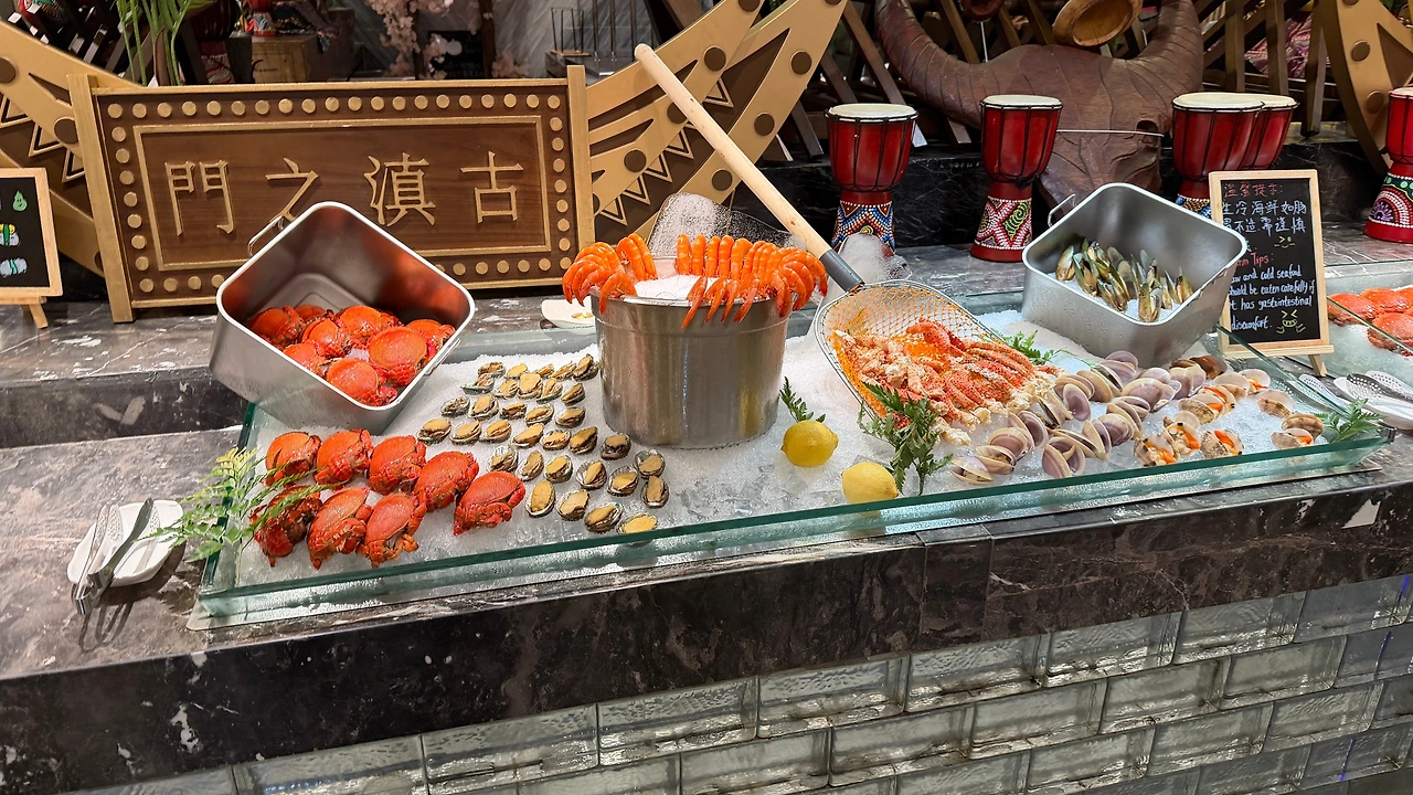 저녁은 쉐라톤 쿤밍 석식 뷔페를 먹기로 합니다. 120CM 이상인 아이는 98위안인데 아이는 103CM 라서 무료로 먹구요 (사실 나이도 어리니깐요.. ㅋ) 성인은 198위안이라서 좋은 가격이라고 생각하고 들어갔어요.