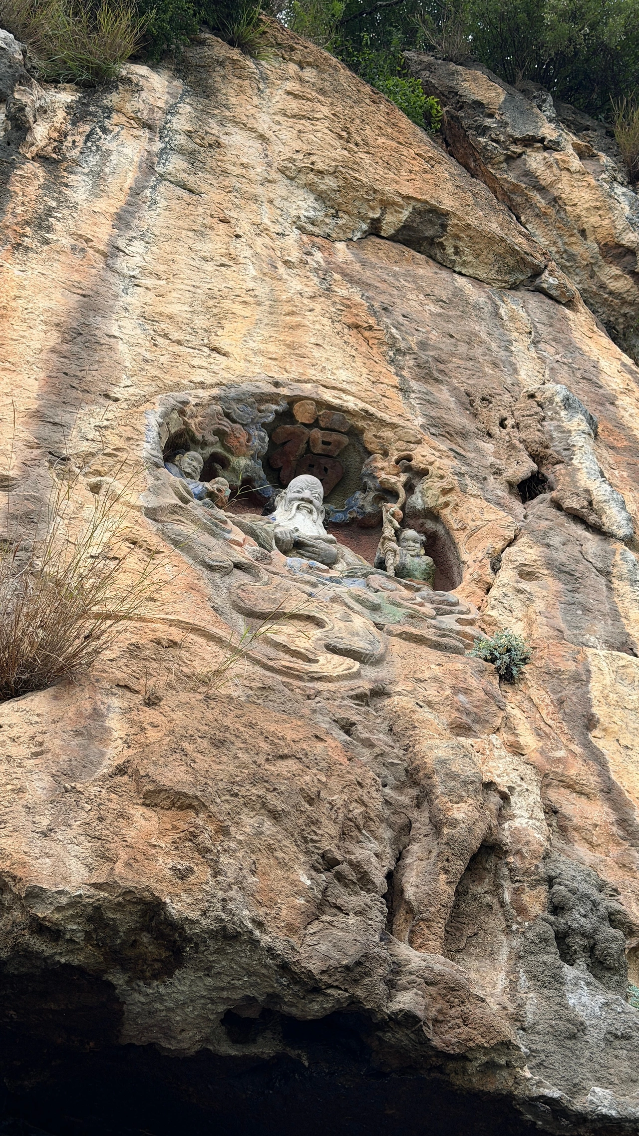 용문 위 암벽에 저렇게 도사님도 조각되어 있어서 재밌어요. 용문 앞에 선 사람들의 입신양명을 흐뭇하게 도와주는 할아부지 느낌입니다.