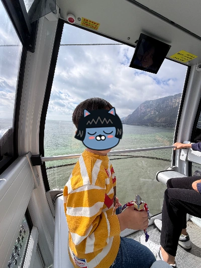 은근히 높이 올라가죠? 아찔해보이기는 한데 케이블카가 워낙 안정적으로 조용히 올라가서 전혀 무섭진 않습니다.