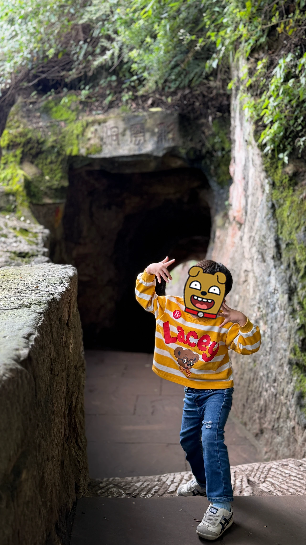 이제 거의 다 올라왔습니다. 저 동굴만 지나면 천대와 용문이 금방입니다. 아이는 거의 다 왔다고 신났어요.