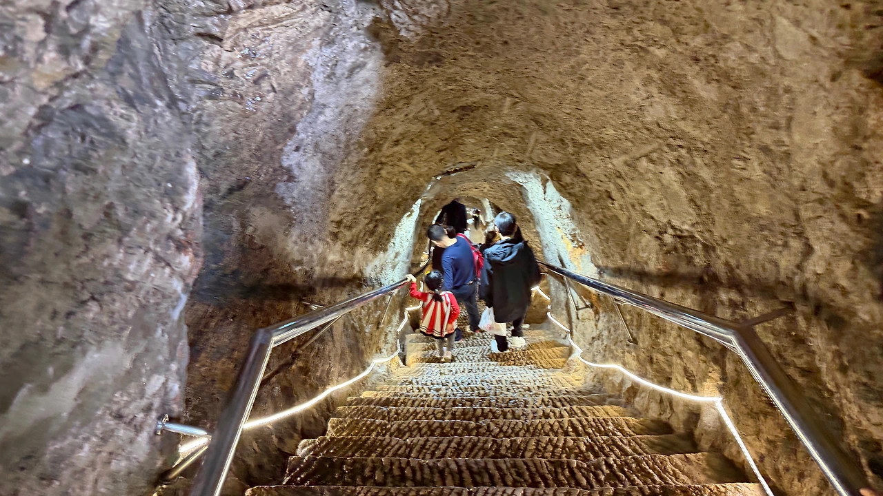 천대 바로 옆으로 난 석굴을 내려갑니다. 중장비 없이 18세기에 인력으로만 수십 년 동안 팠다고 하니 엄청난 공사였을 거에요 ㄷㄷ