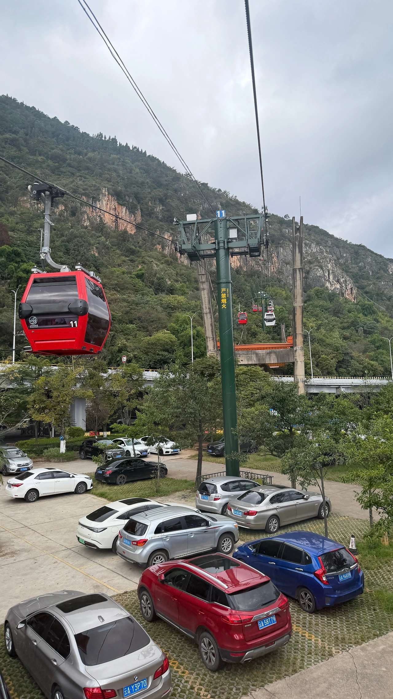 운남민족촌 근처 탑승점 (저희가 디디 내린 곳)에서 서산풍경구 입구까지 약 20분은 탄 거 같아요. 케이블카 내려서 걸어서 내려오는 코스로 용문을 볼 수 있게끔 곤돌라도 있는데요, 26년까지 리뉴얼을 하는지 공사중이었습니다. 케이블카 종점에서부터 용문으로 오르는 길 입구까지 전기버스가 편도 20위안에 운영중이었습니다.