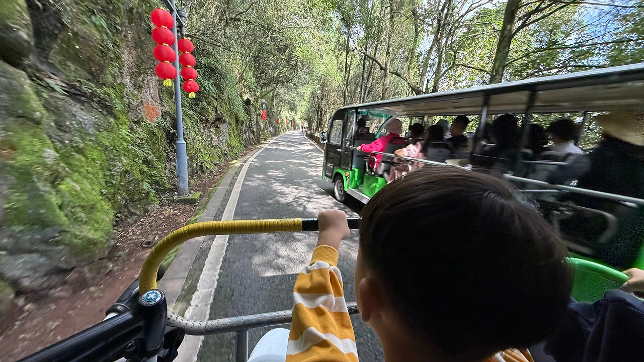 용문 위까지 올라가는 곤돌라는 보수 중이라, 대부분 올라가는 계단 입구까지 가는 전기버스를 이용합니다. 편도 20위안! 내려올 때는 내리막길이라 버스 안 타고 슬슬 걸어오니 남산둘레길 느낌 나고 시원하고 좋았어요.