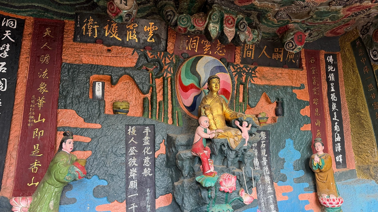 이 석굴은 1784년부터 약 50~70년 간 승려와 지역 주민들이 절벽을 깎아 조성했다고 합니다. 불교 신앙과 공덕을 쌓기 위한 수행의 일환으로 시작된 이 유적은, 윈난성에서 가장 잘 보존된 석각 불교 유적으로 꼽힙니다. 이름 ‘용문’은 “용문에 오르면 몸값이 백 배” 된다는 과거 합격 기원 전설에서 유래했어요. 실제로 석굴 입구엔 ‘一登龍門,身價百倍’라는 글귀가 새겨져 있답니다. 불상, 경문, 복도, 작은 사당까지 입체적으로 조성되어 명상과 기도 공간으로도 사용됐죠. 청나라 시기 지방 문화와 종교가 어우러진 독특한 사례예요.