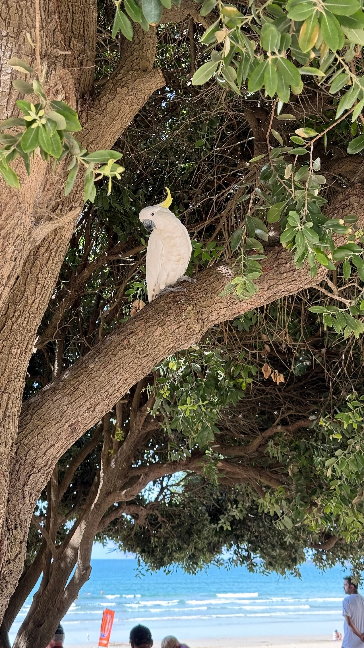 호주를 대표하는 상징적인 새인 큰유황앵무(Sulphur-crested Cockatoo)입니다. 코카투 라고 많이 부르는 귀여운 앵무새죠. 지능이 매우 높아 쓰레기통 뚜껑을 열거나 사람의 물건을 씹어 망가뜨리는 등 장난기 많은 행동으로 호주 현지에서는 '말썽꾼'으로 여겨지기도 합니다.