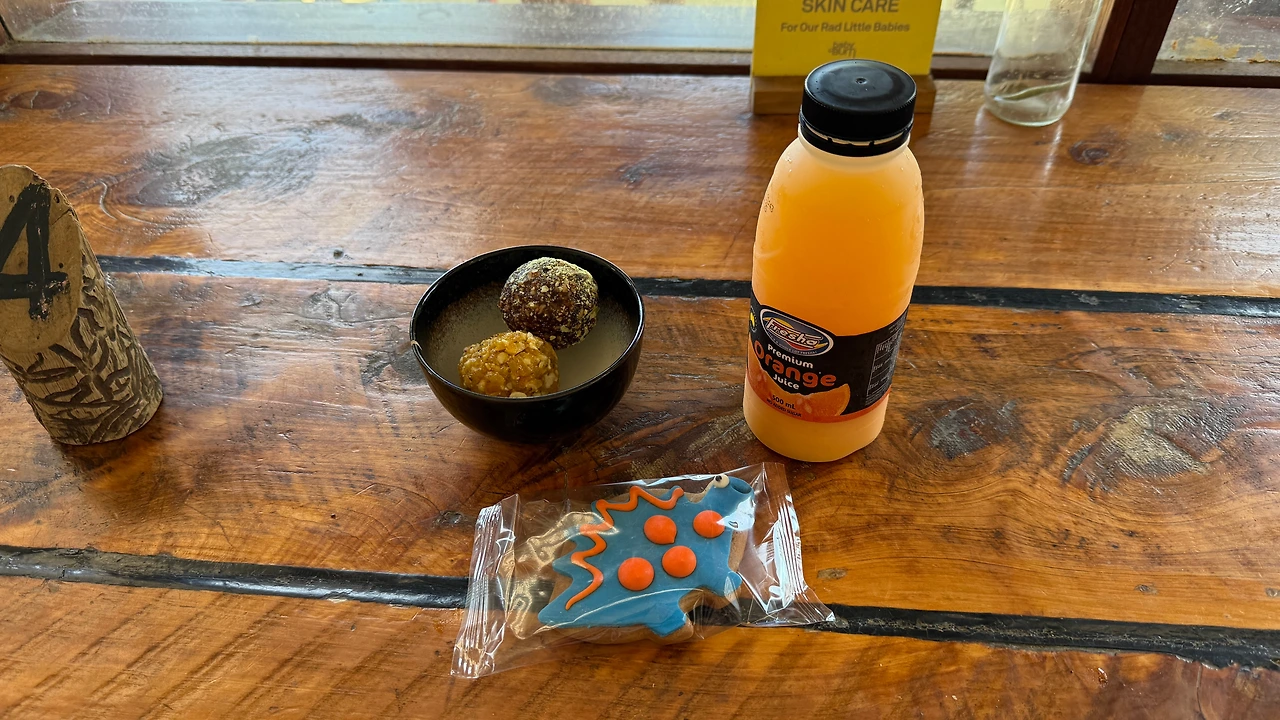 비치에 있는 브런치 카페 'HAH'에서 점심을 해결하러 들어갔습니다. 아이가 배고프다고 떼써서 우선 간단히 허기 해소할 간식과 쥬스도 샀습니다.