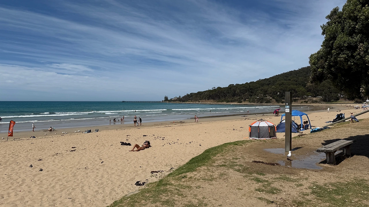 Lorne Beach 는 수영 물놀이를 하는 사람들이 꽤 있었어요. 바다 저편은 맑은데 비치 안 쪽은 날씨가 꽤 흐려서 은근 쌀쌀했던.
