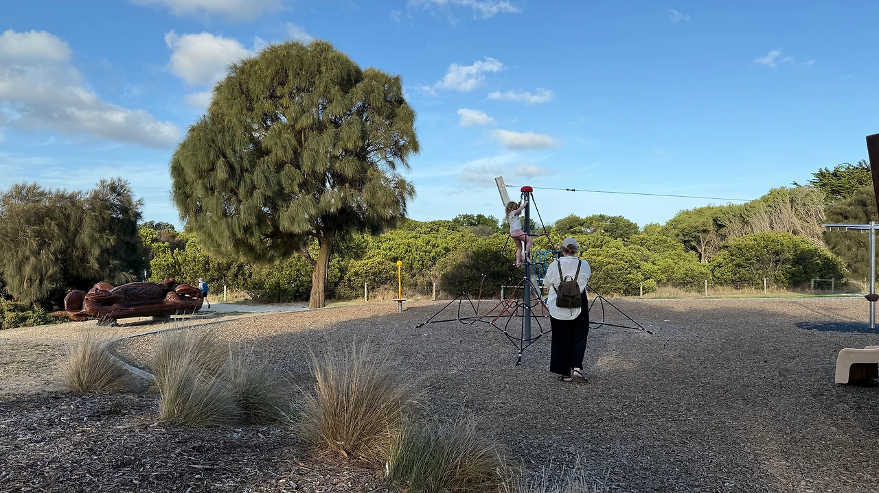 멜버른에서 출발해서 1시간 정도 달려서 Anglesea 의 'Coogoorah Park' 플레이그라운드에 도착했어요. 일반적인 관광객은 절대 들르지 않을 스팟! 그러나 여행육아 전문가의 레이더에 포착된 좋은 놀이터입니다 ㅎㅎ